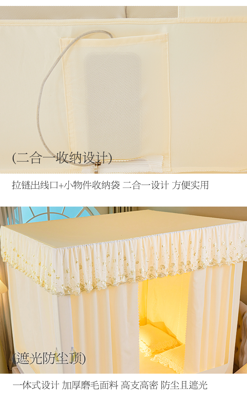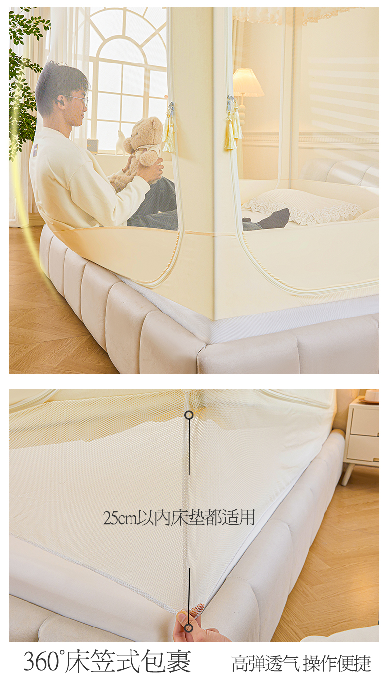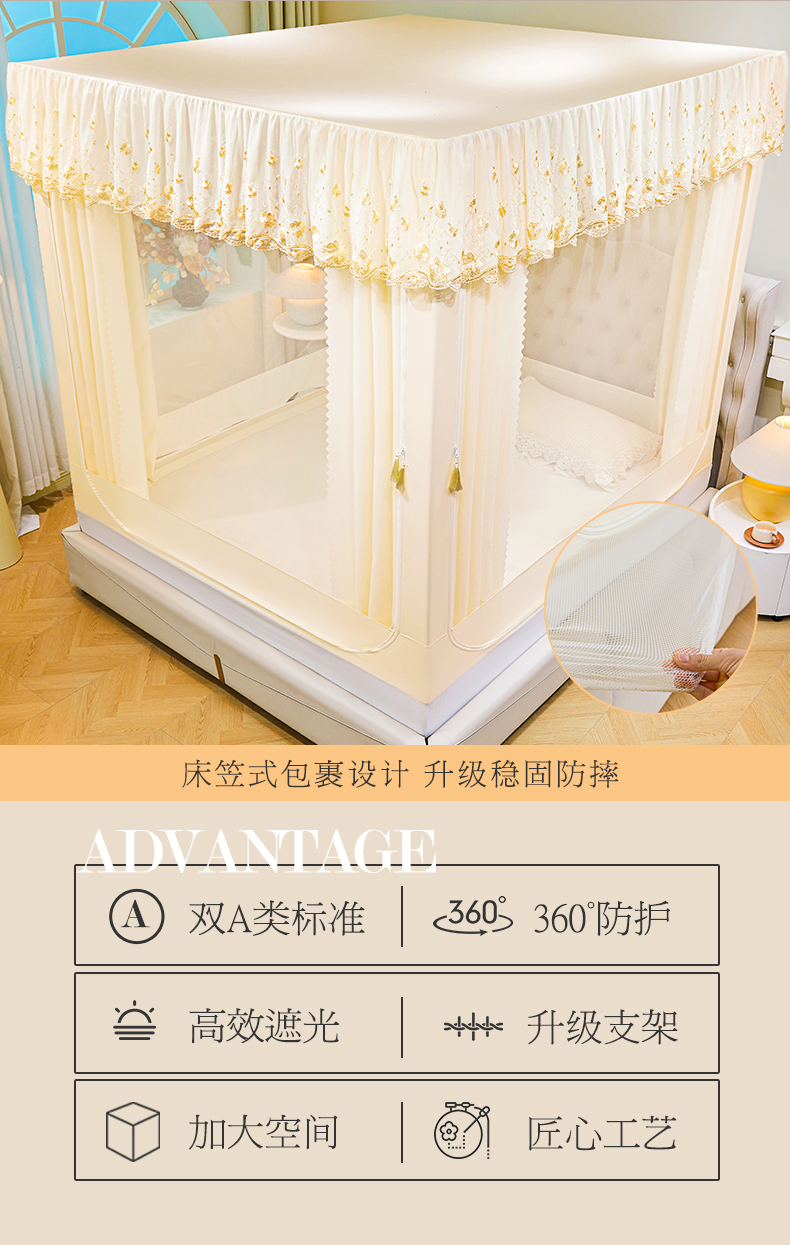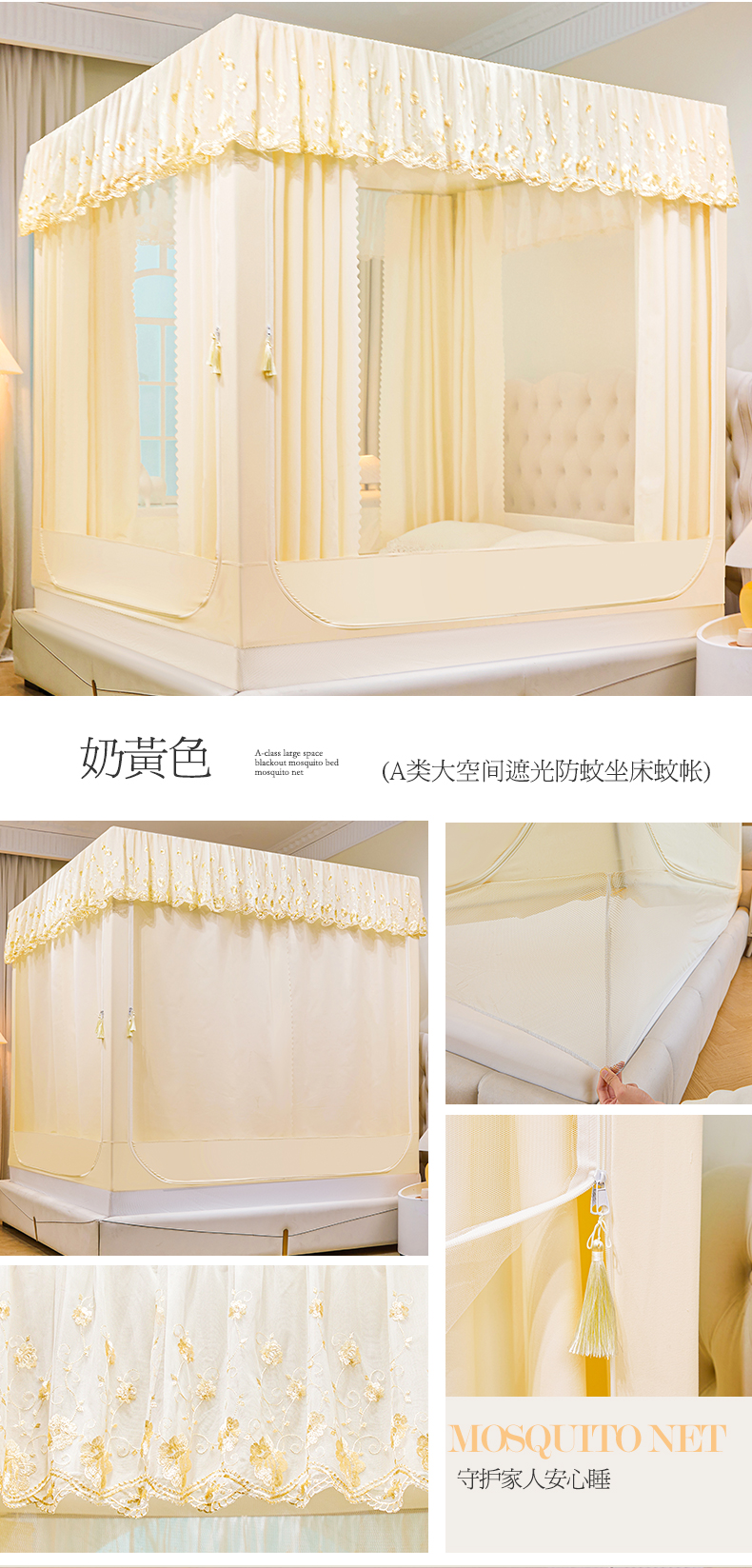 当前位置: 91家纺网 > 商品网购 > 床上用品 > 蚊帐 > 坐床式蚊帐 > 艾晶美家纺有限公司 2025新款坐式刺绣床帘蚊帐 奶黄色