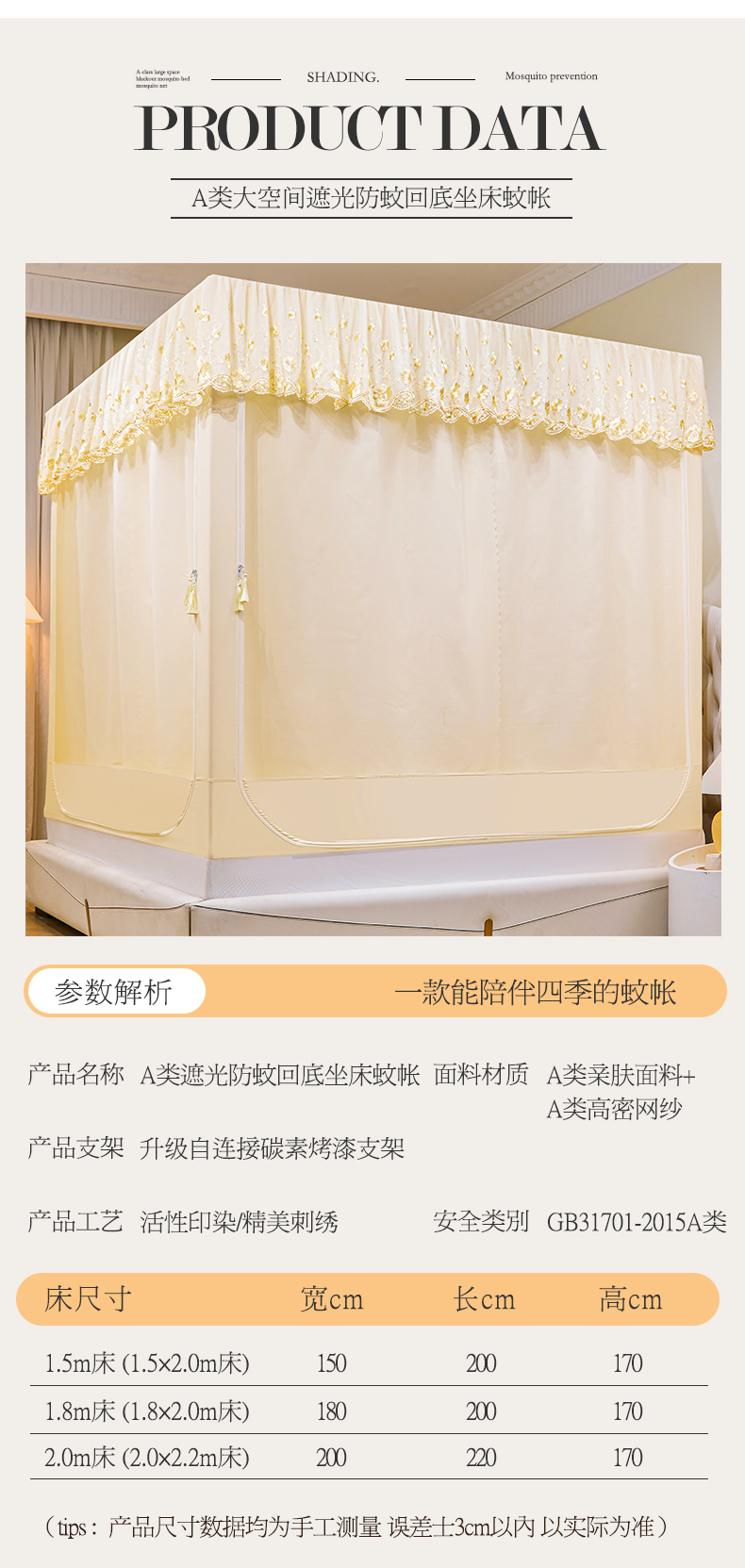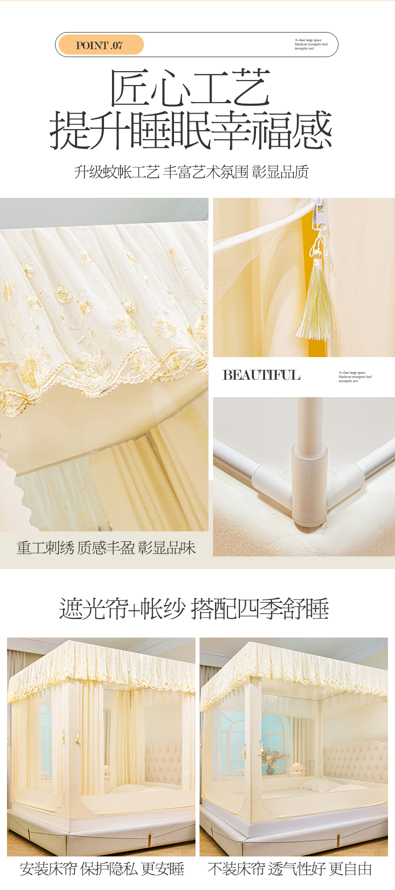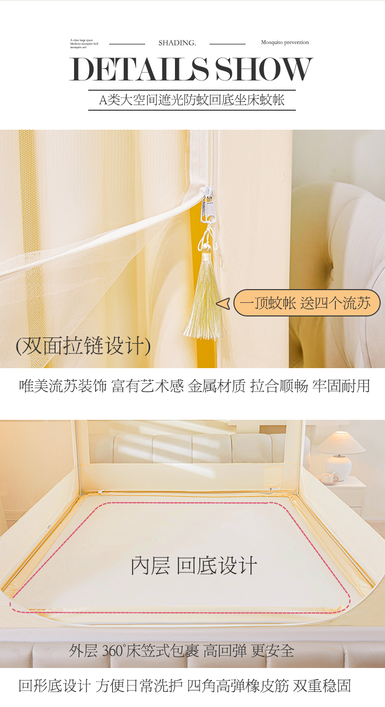 当前位置: 91家纺网 > 商品网购 > 床上用品 > 蚊帐 > 坐床式蚊帐 > 艾晶美家纺有限公司 2025新款坐式刺绣床帘蚊帐 奶黄色