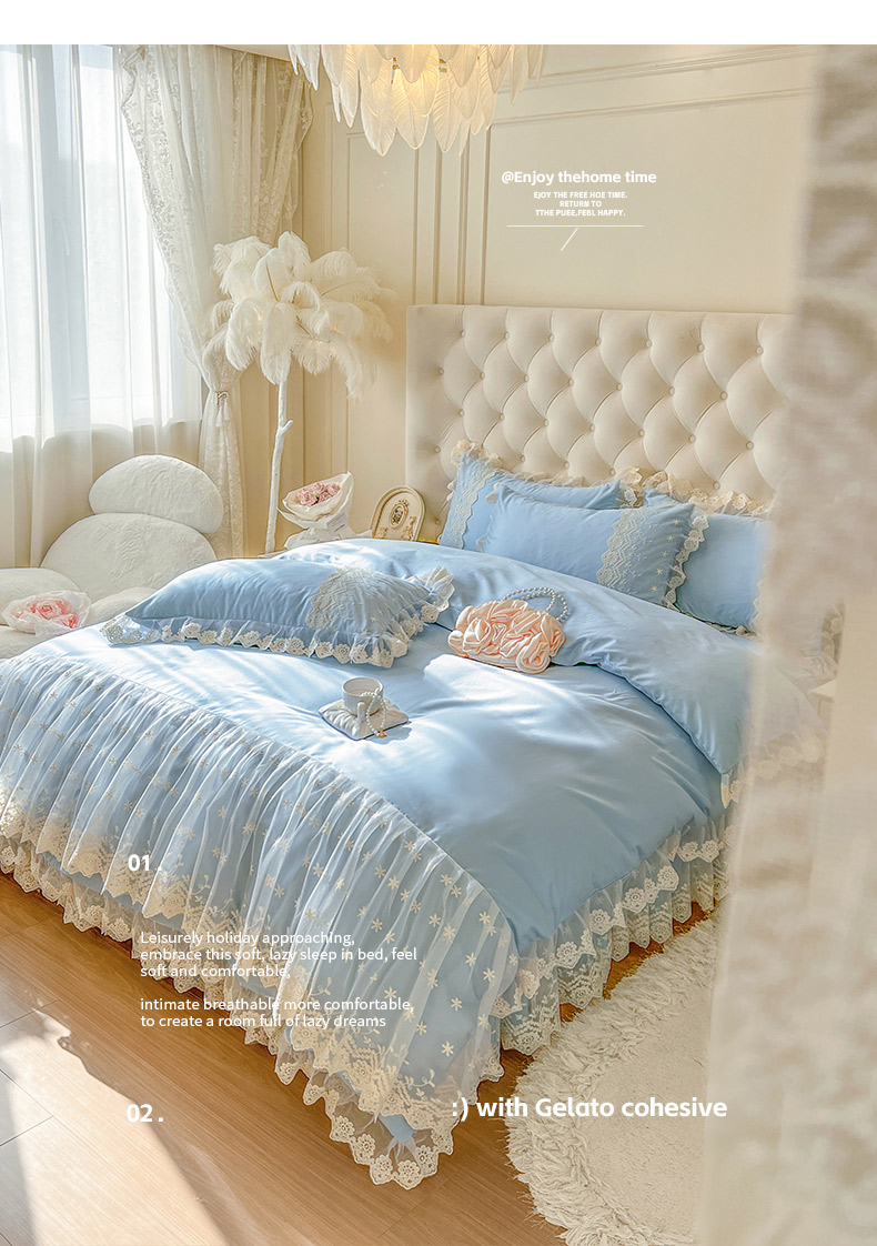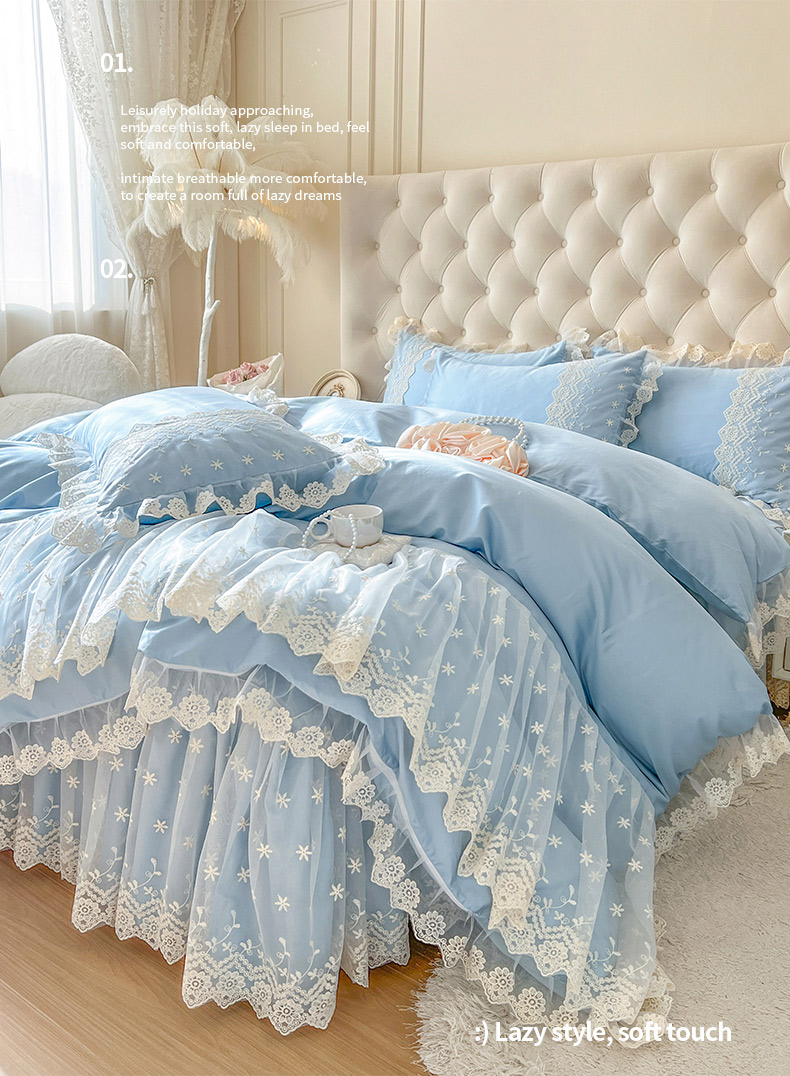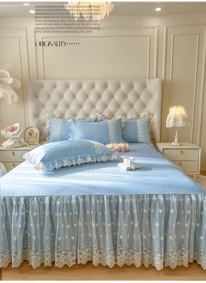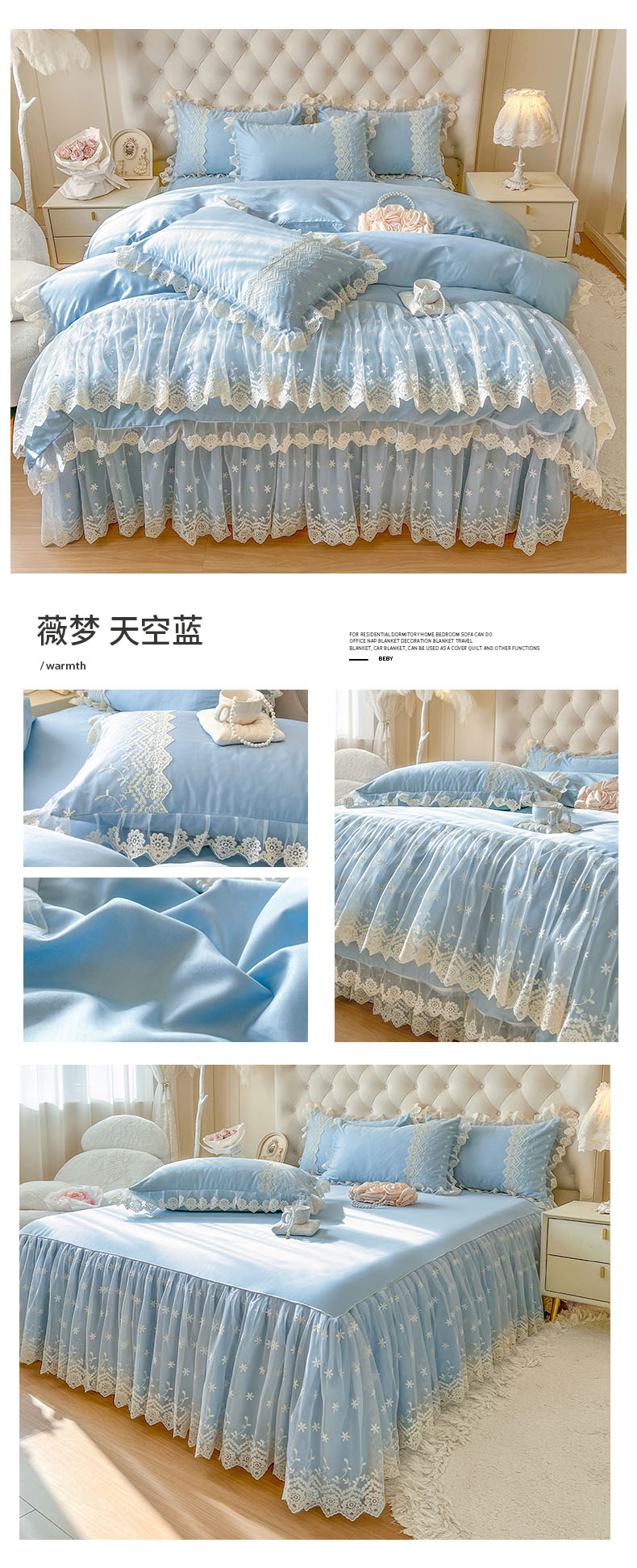 当前位置: 91家纺网 > 商品网购 > 床品套件 > 四件套 > 全棉普通四件套 > 恋尚 2025新款60贡缎长绒棉床笠裙款四件套-薇梦 薇梦-天空蓝