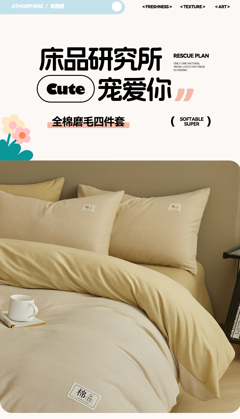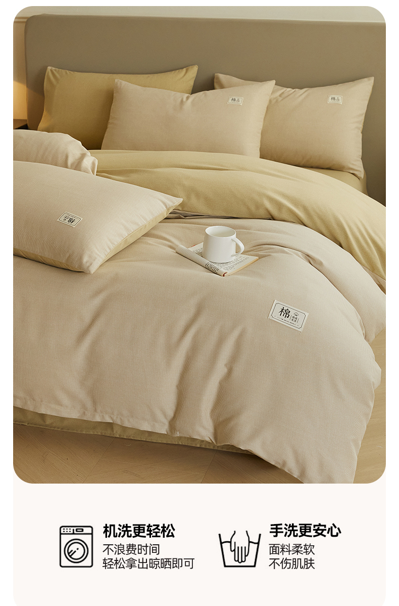 商品名称:(总)悦织湾家纺 2025春秋新款纯色全棉纯棉磨毛四件套床单枕套被套三四件套
