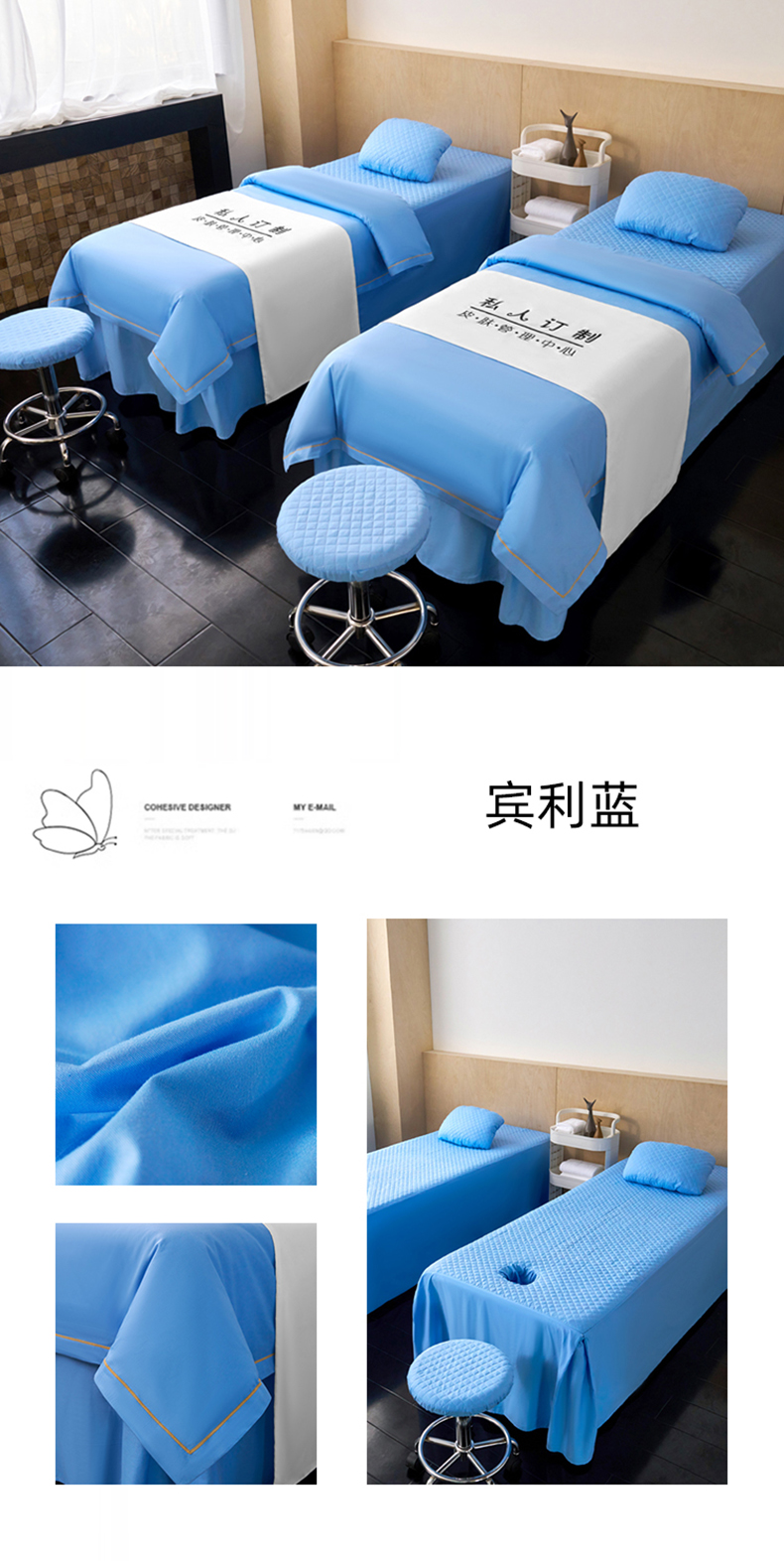 2024新品四季全棉花边压线系列美-容床罩 全棉压线款宾利蓝