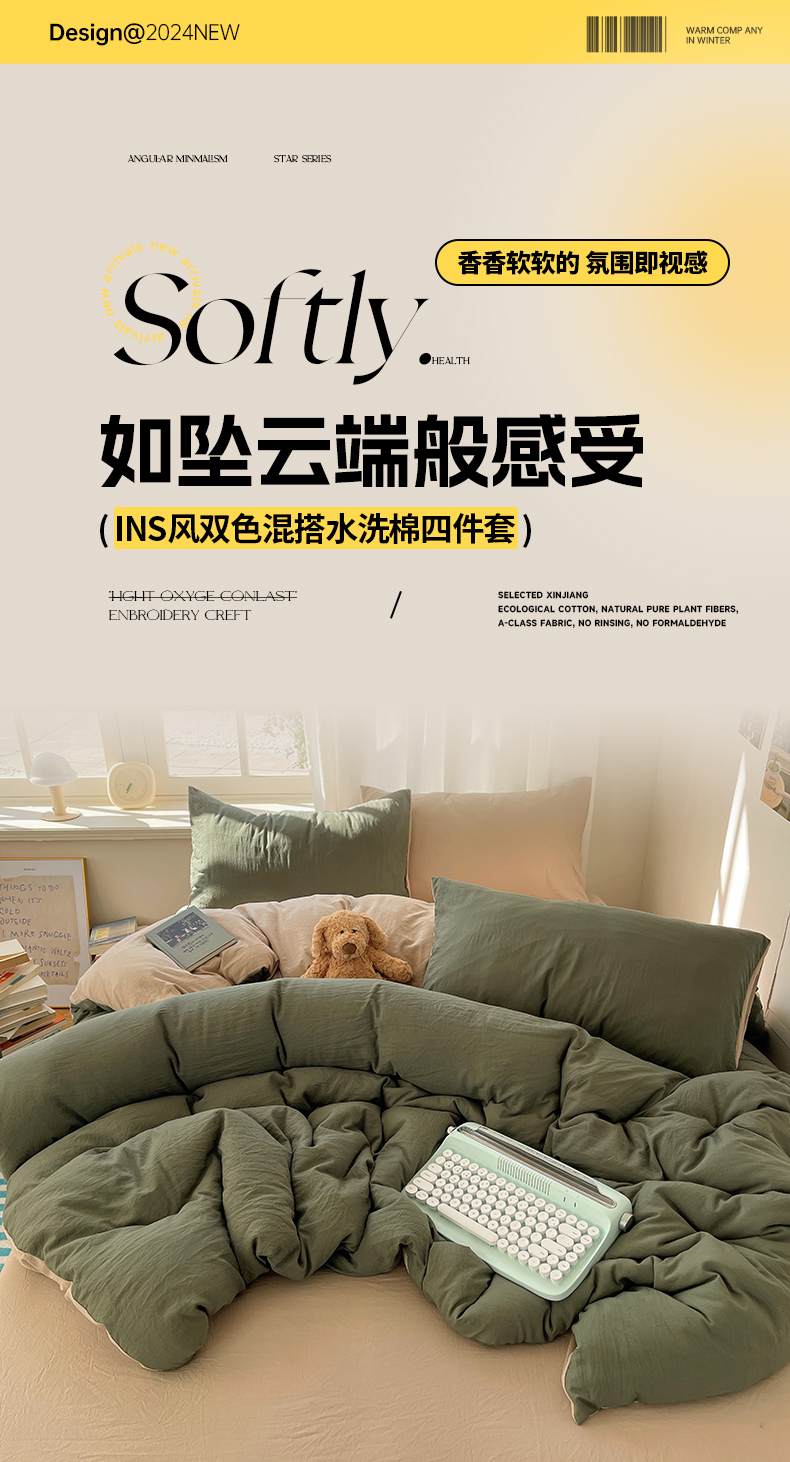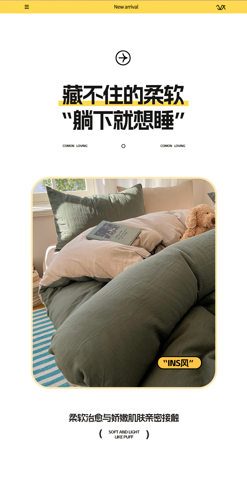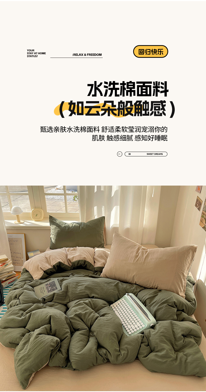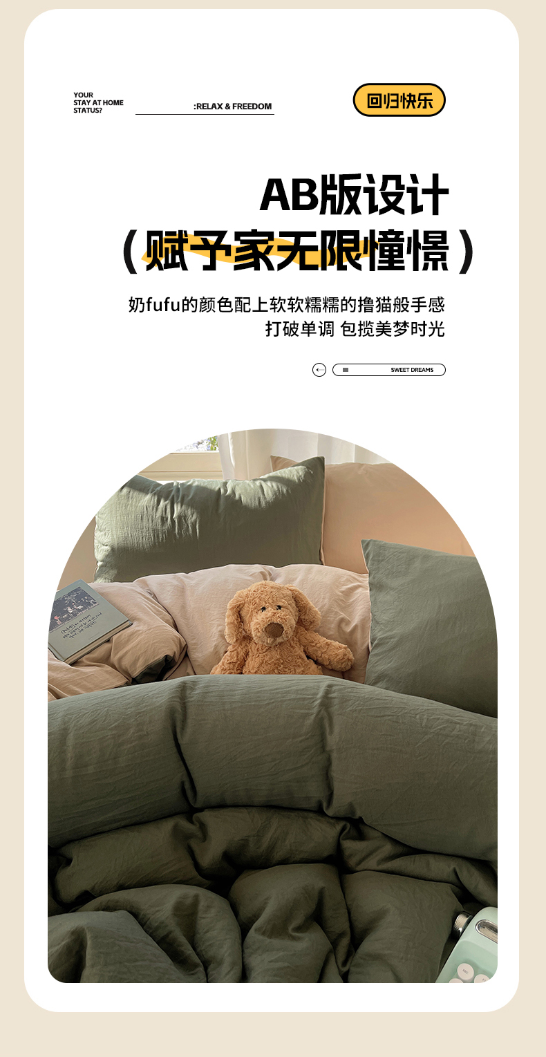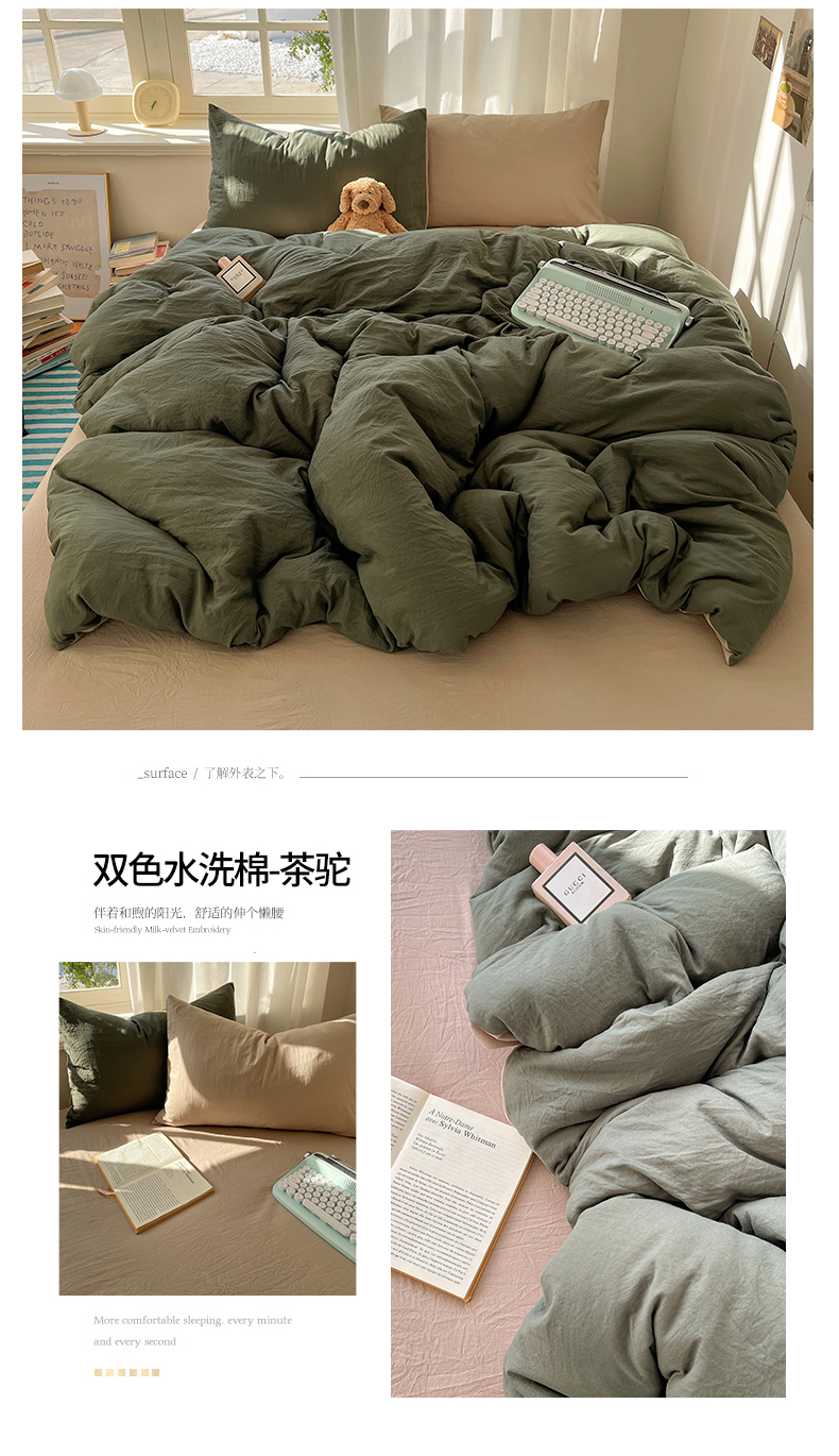 当前位置: 91家纺网 > 商品网购 > 床品套件 > 四件套 > 水洗棉四件套 > 阿曼达 2025新款ins博主风纯色混搭双色水洗m四件套 双色水洗m-茶驼