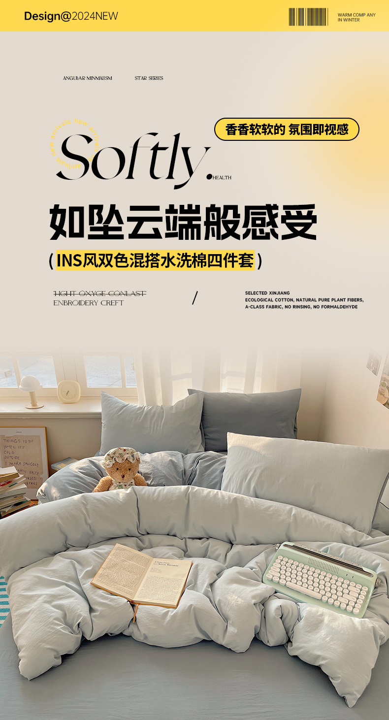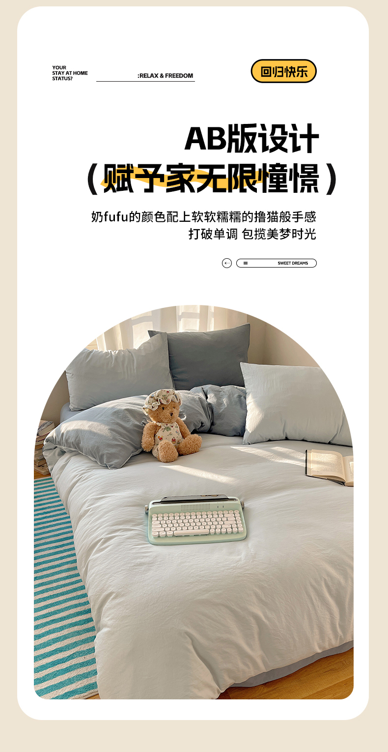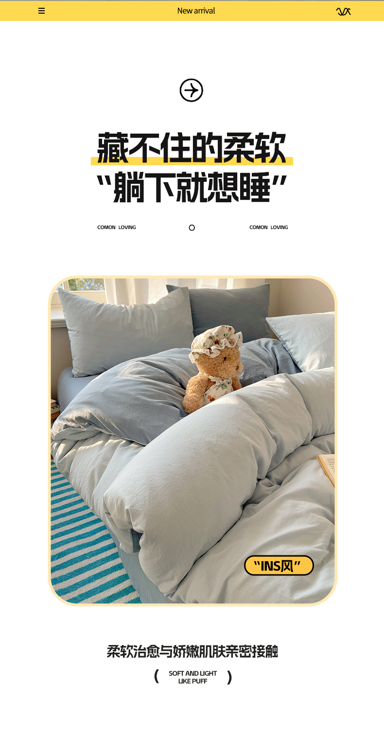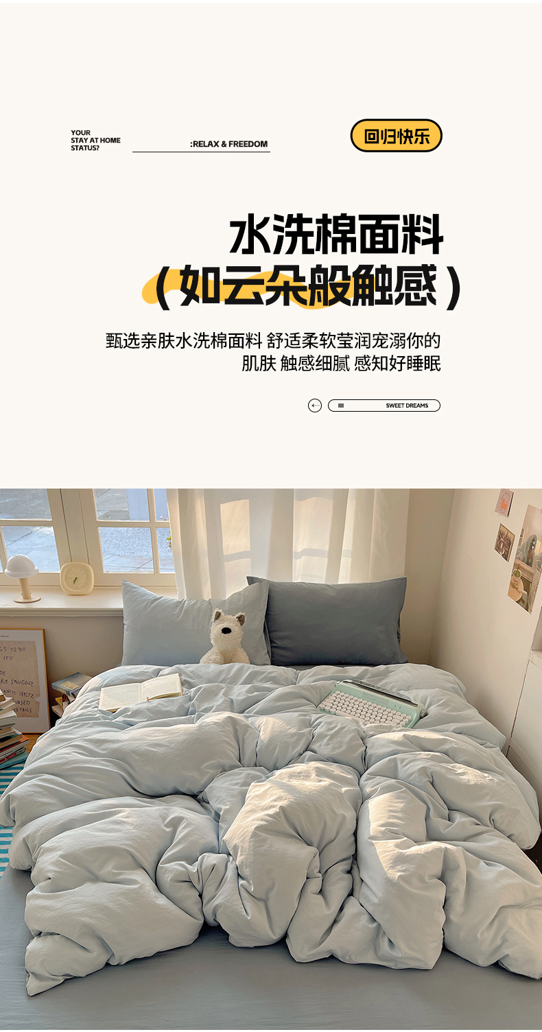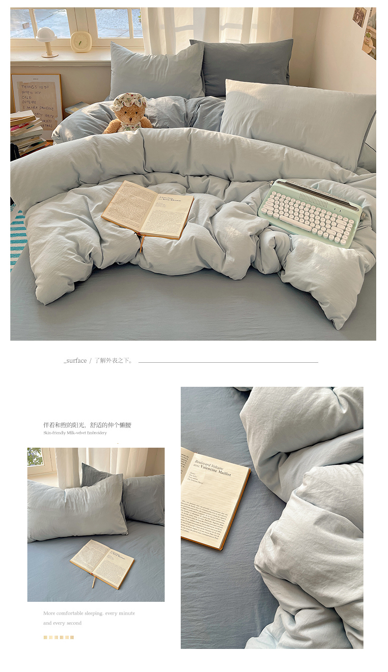 当前位置: 91家纺网 > 商品网购 > 床品套件 > 四件套 > 水洗棉四件套 > 阿曼达 2025新款ins博主风纯色混搭双色水洗m四件套 双色水洗m-天蓝雾