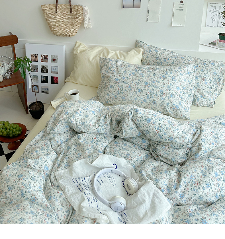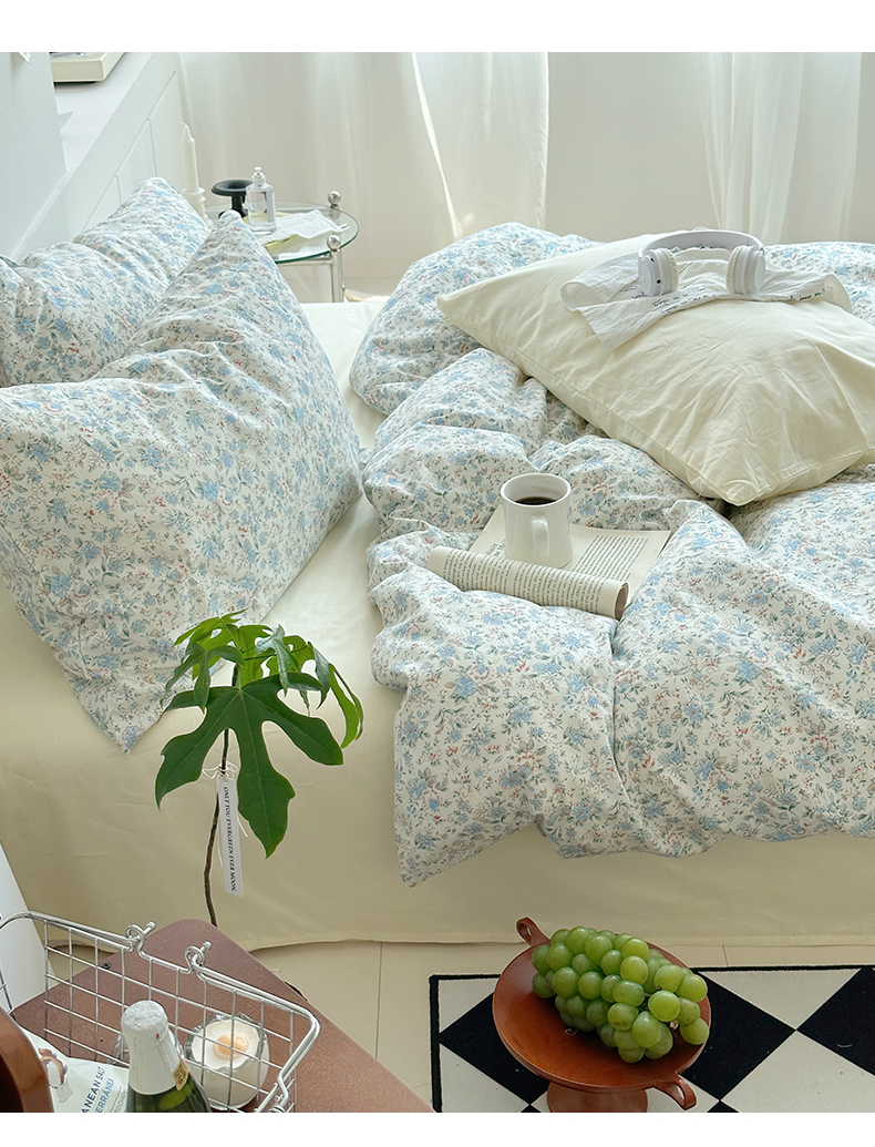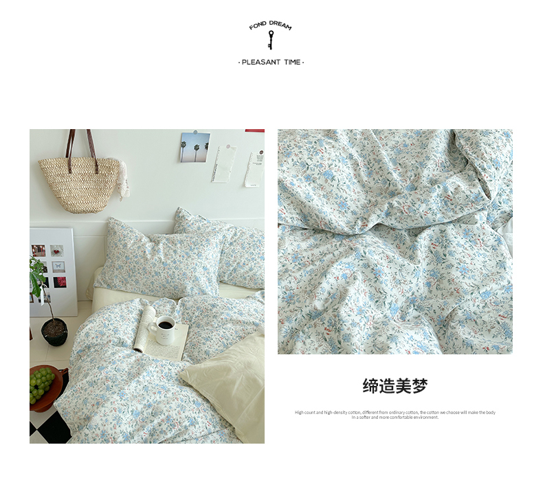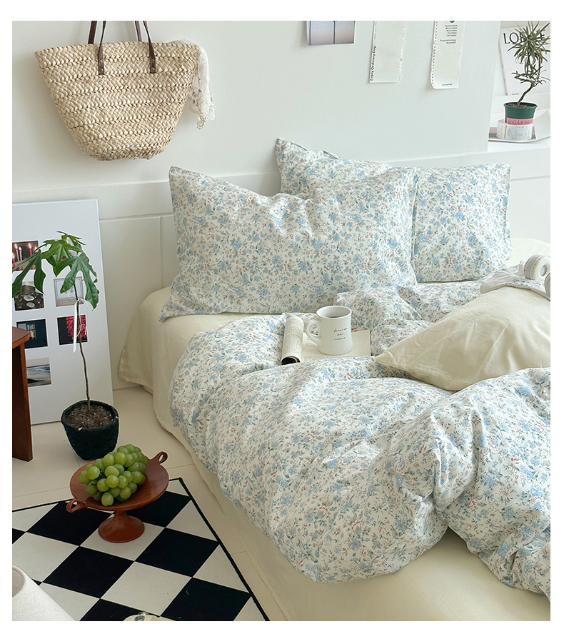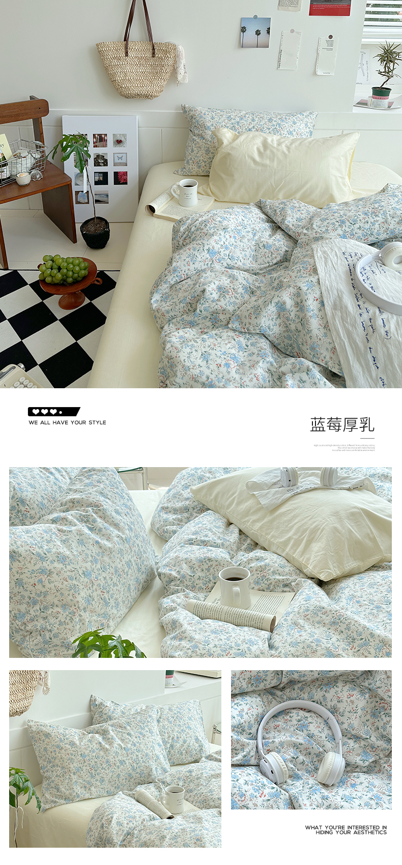 当前位置: 91家纺网 > 商品网购 > 床品套件 > 四件套 > 全棉普通四件套 > 2025新款纯棉小清新四件套小碎花学生三件套纯色床单印花枕套双人床笠 蓝莓厚乳 象牙白