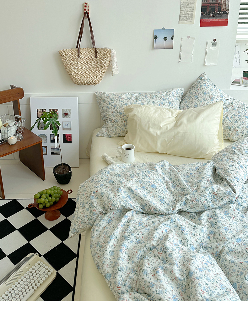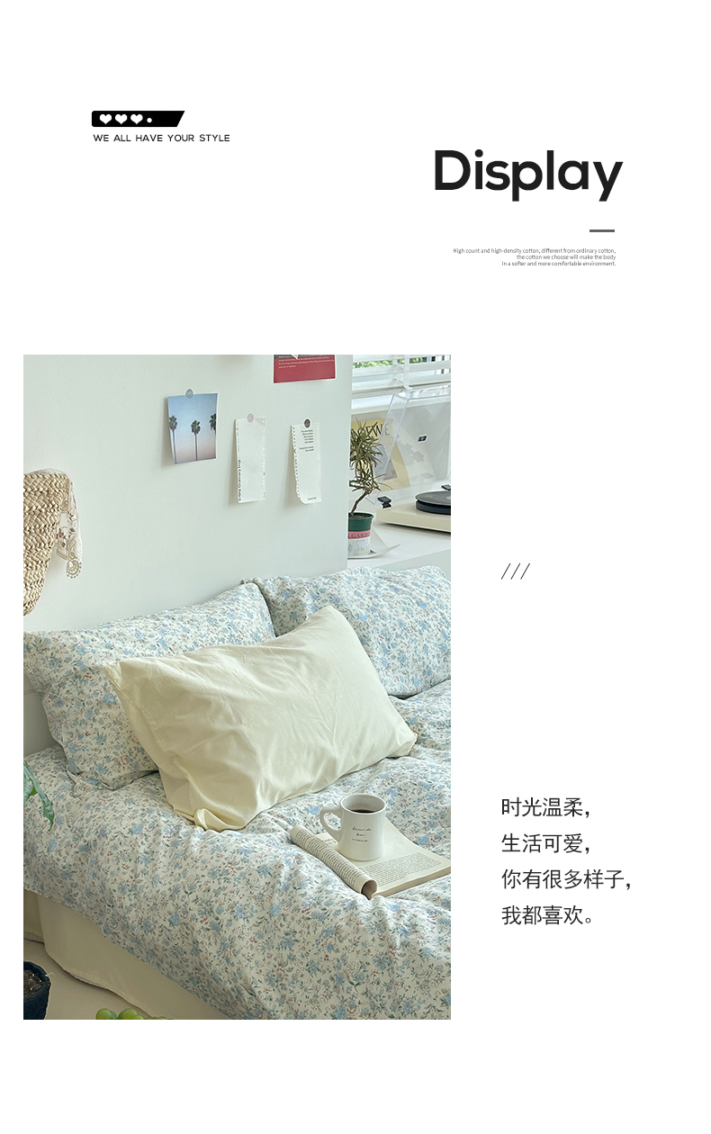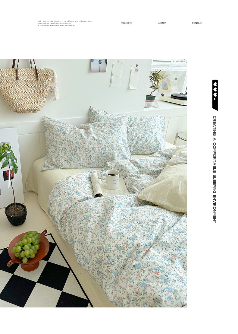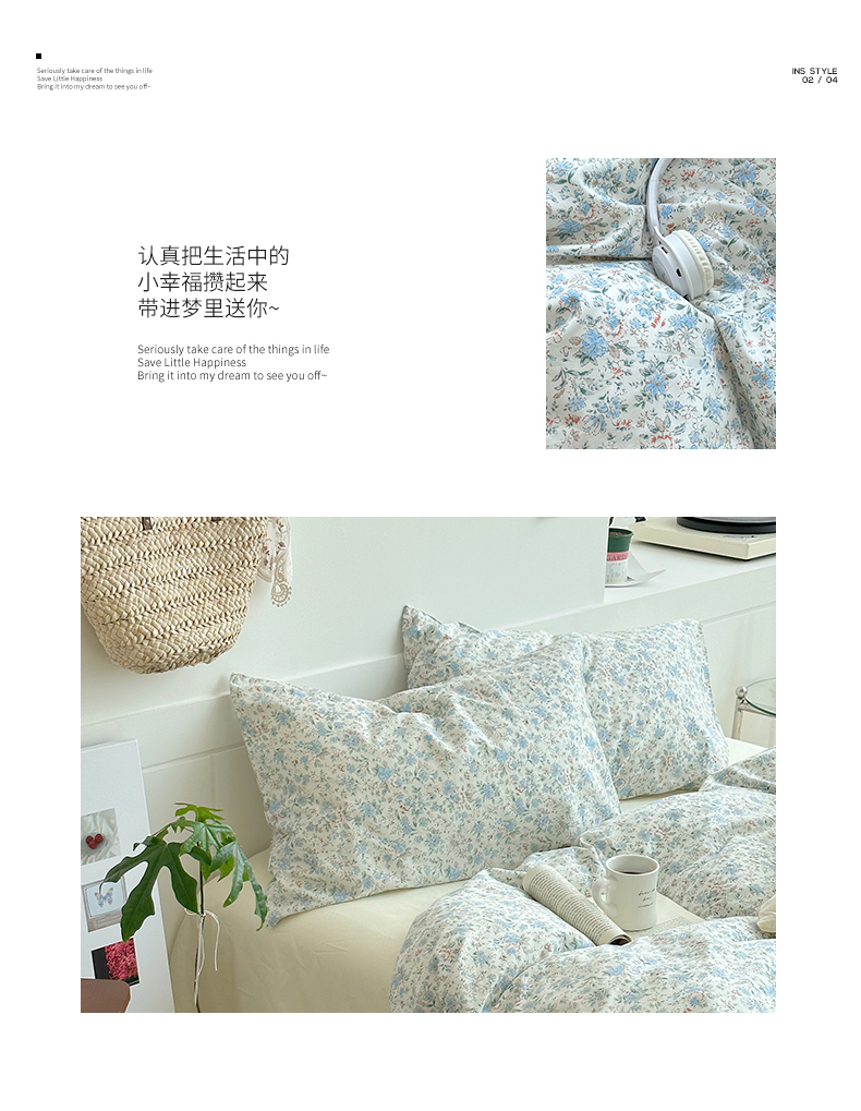 当前位置: 91家纺网 > 商品网购 > 床品套件 > 四件套 > 全棉普通四件套 > 2025新款纯棉小清新四件套小碎花学生三件套纯色床单印花枕套双人床笠 蓝莓厚乳 象牙白
