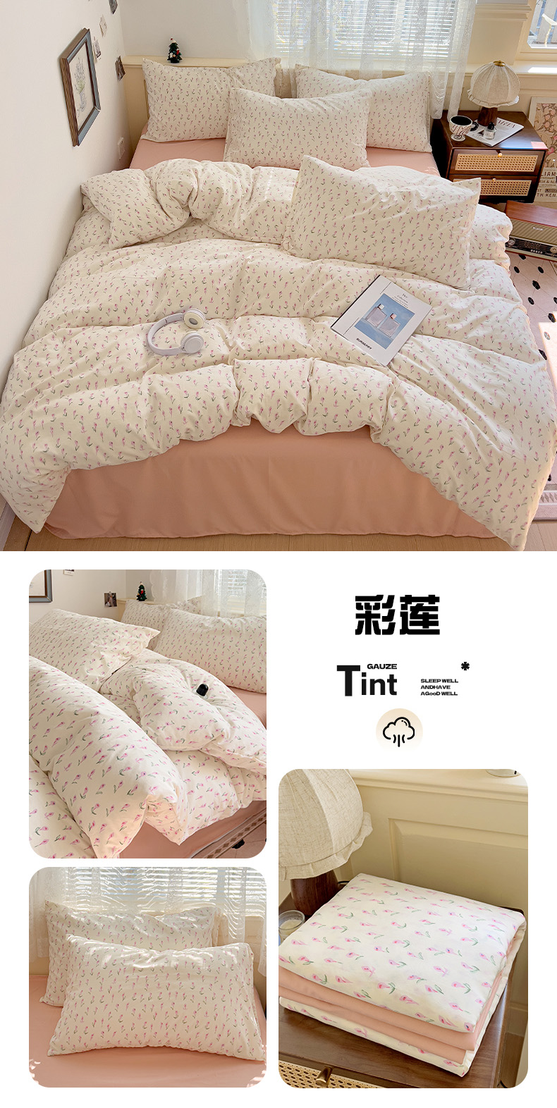 当前位置: 91家纺网 > 商品网购 > 床品套件 > 四件套 > 其它四件套 > 夜笙2025新款A类水洗棉双层纱印花四件套 彩莲