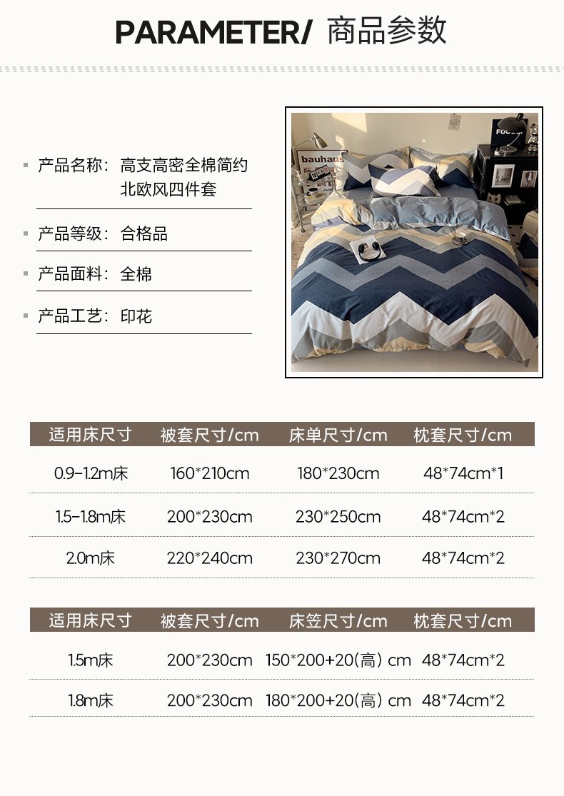商品名称:盛馨 2025年高支高密全棉套件简约北欧风13372纯棉床笠四件套三件套 艾伦