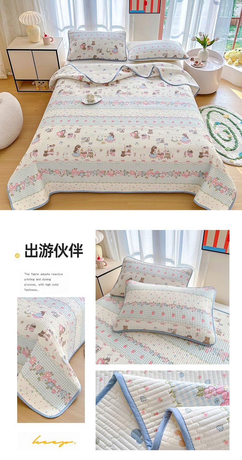 • 91家纺网 家纺一手货源 找家纺 2025新款13070单面全棉绗缝床盖三件套 出游伙伴