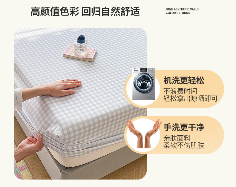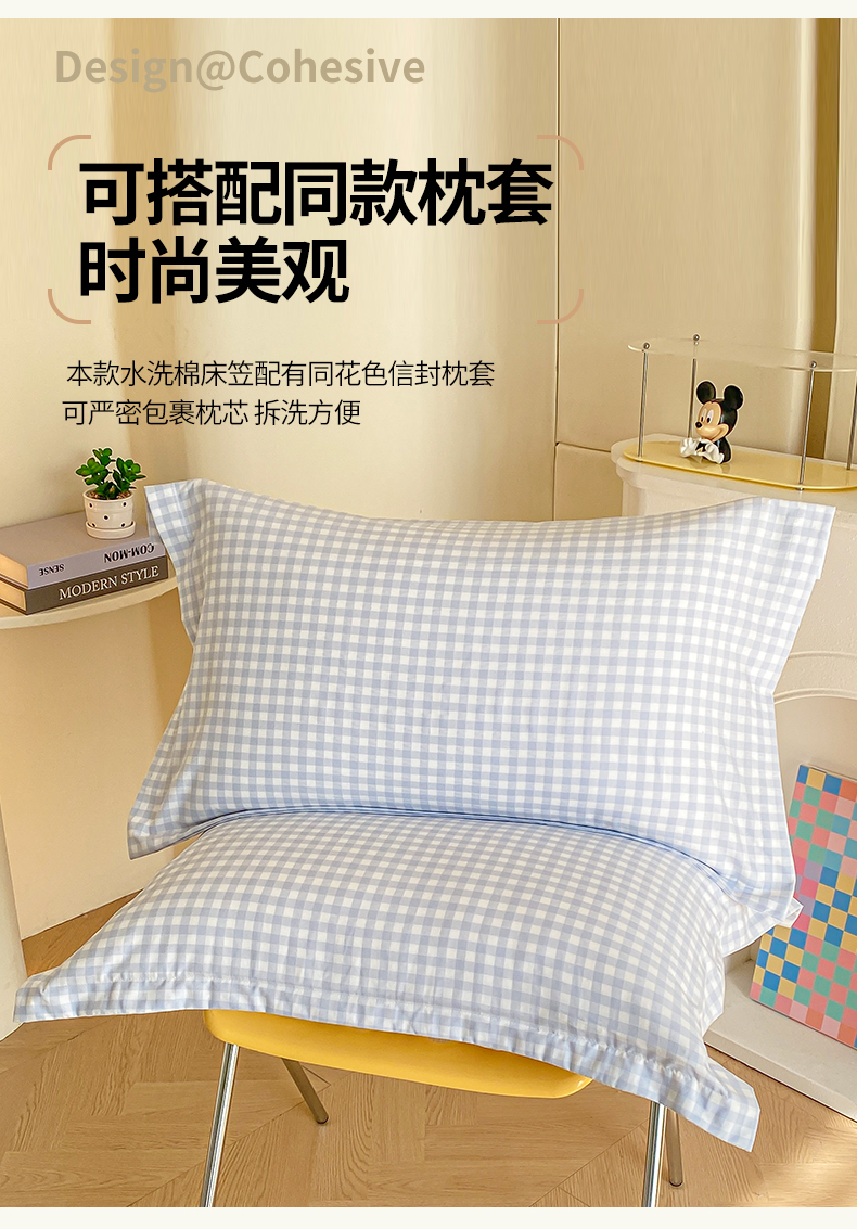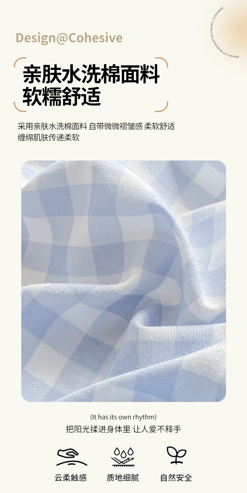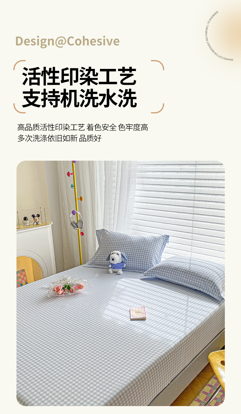 商品名称:恬澳家纺 2025新款森系水洗棉无印风单床笠 森系-蓝格