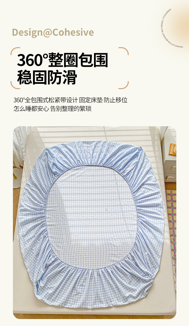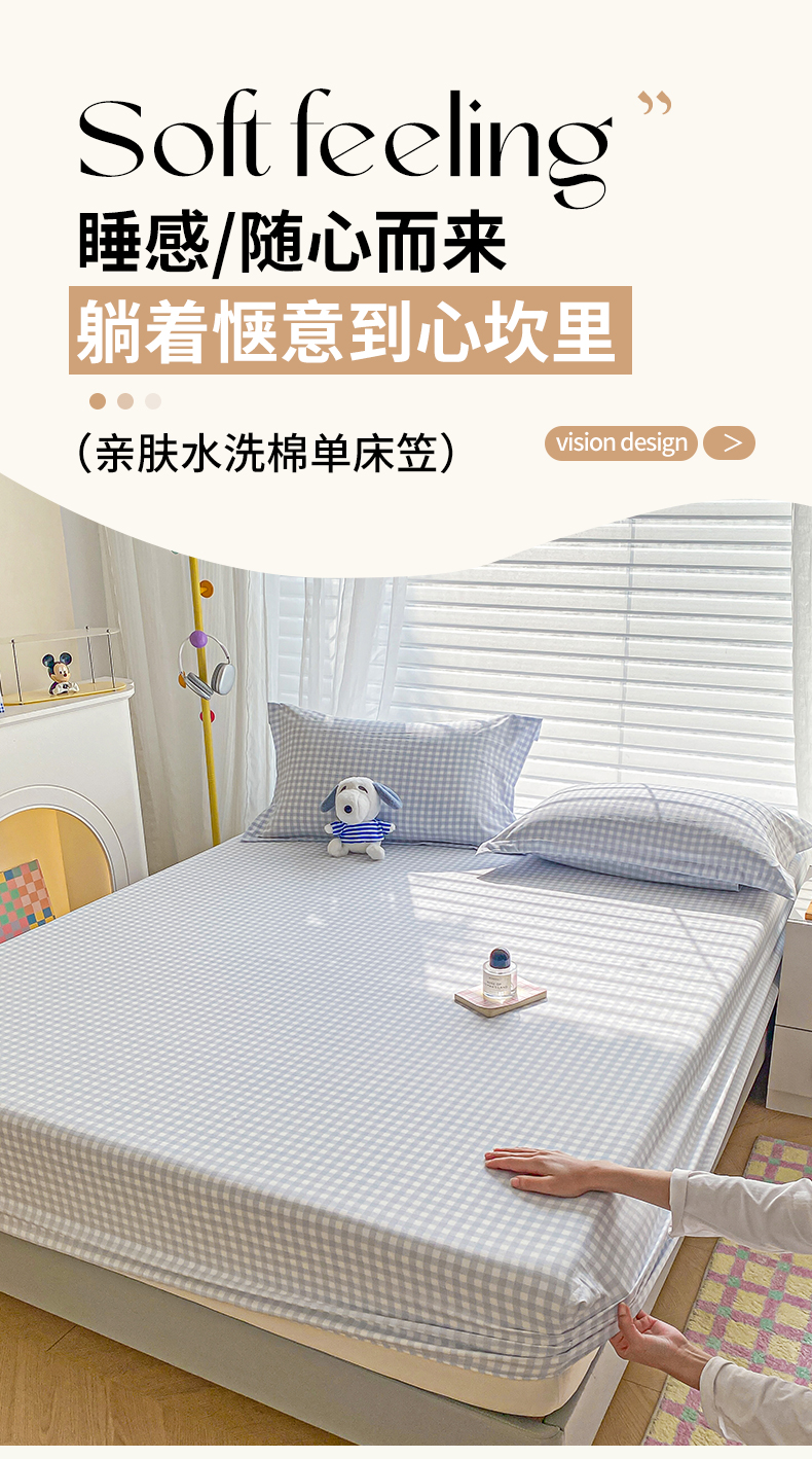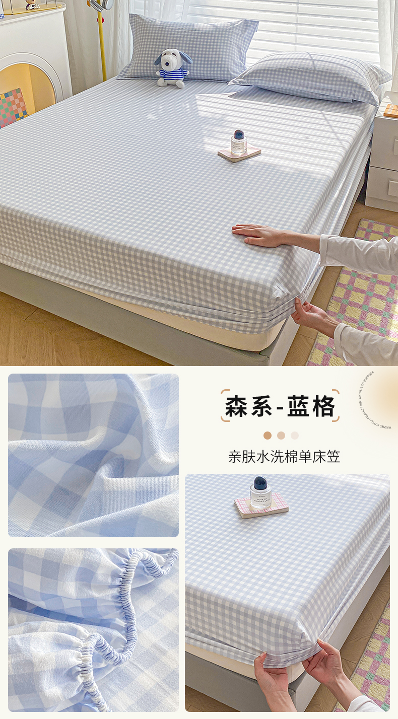 恬澳家纺 2025新款森系水洗棉无印风单床笠 森系-蓝格