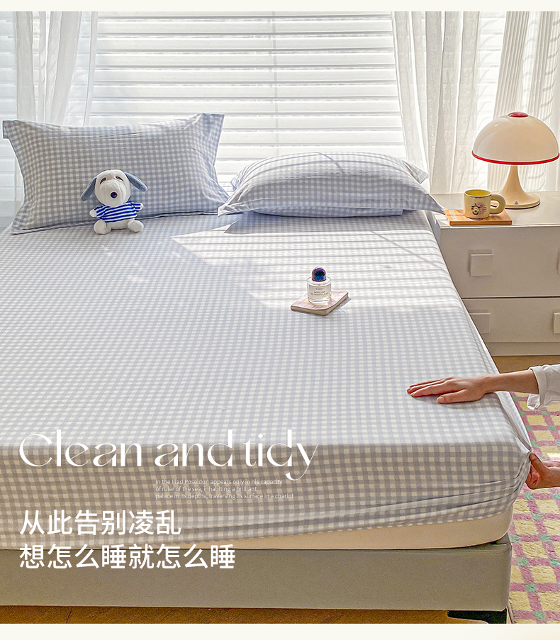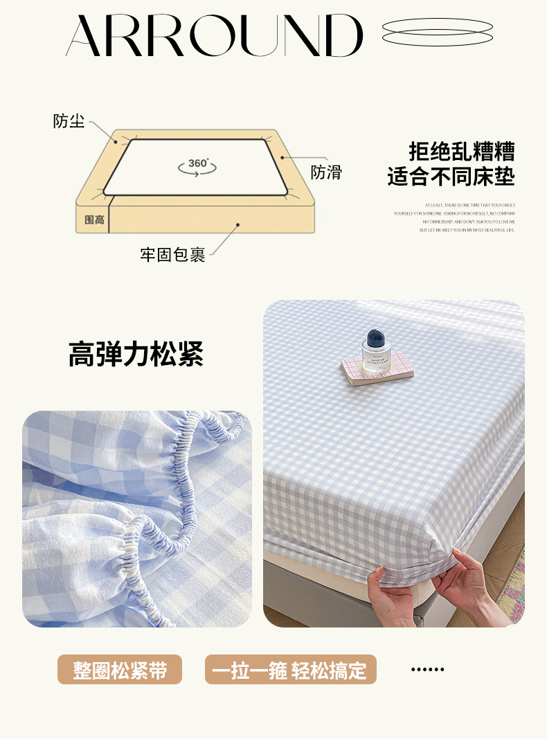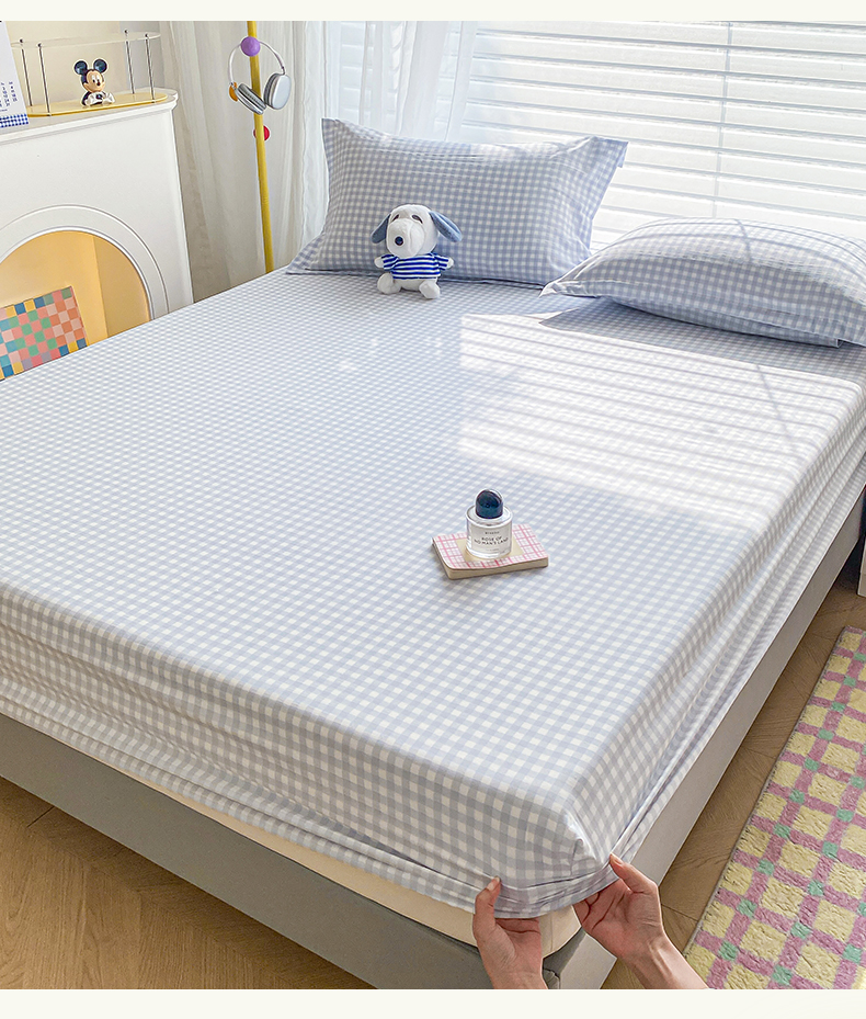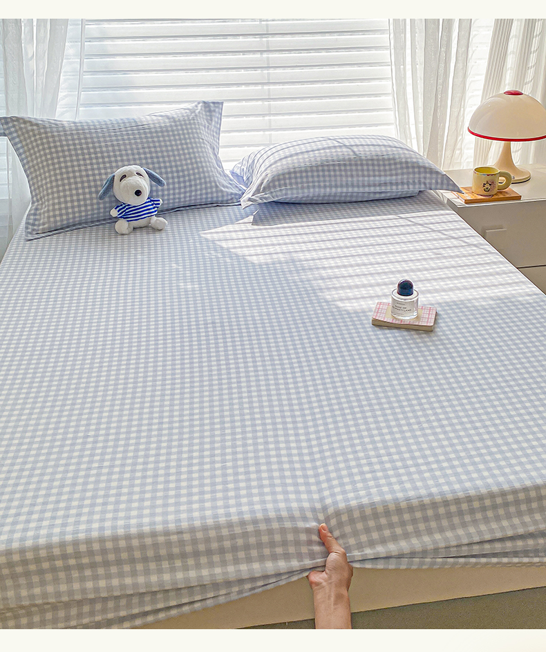 恬澳家纺 2025新款森系水洗棉无印风单床笠 森系-蓝格