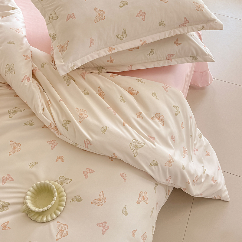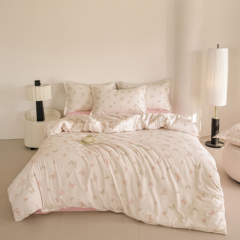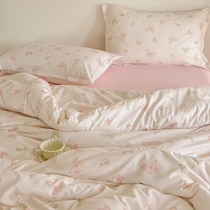 商品名称:壹号库 2025秋冬新款针织双层纱小清新印花四件套(专版花型) 蝶舞