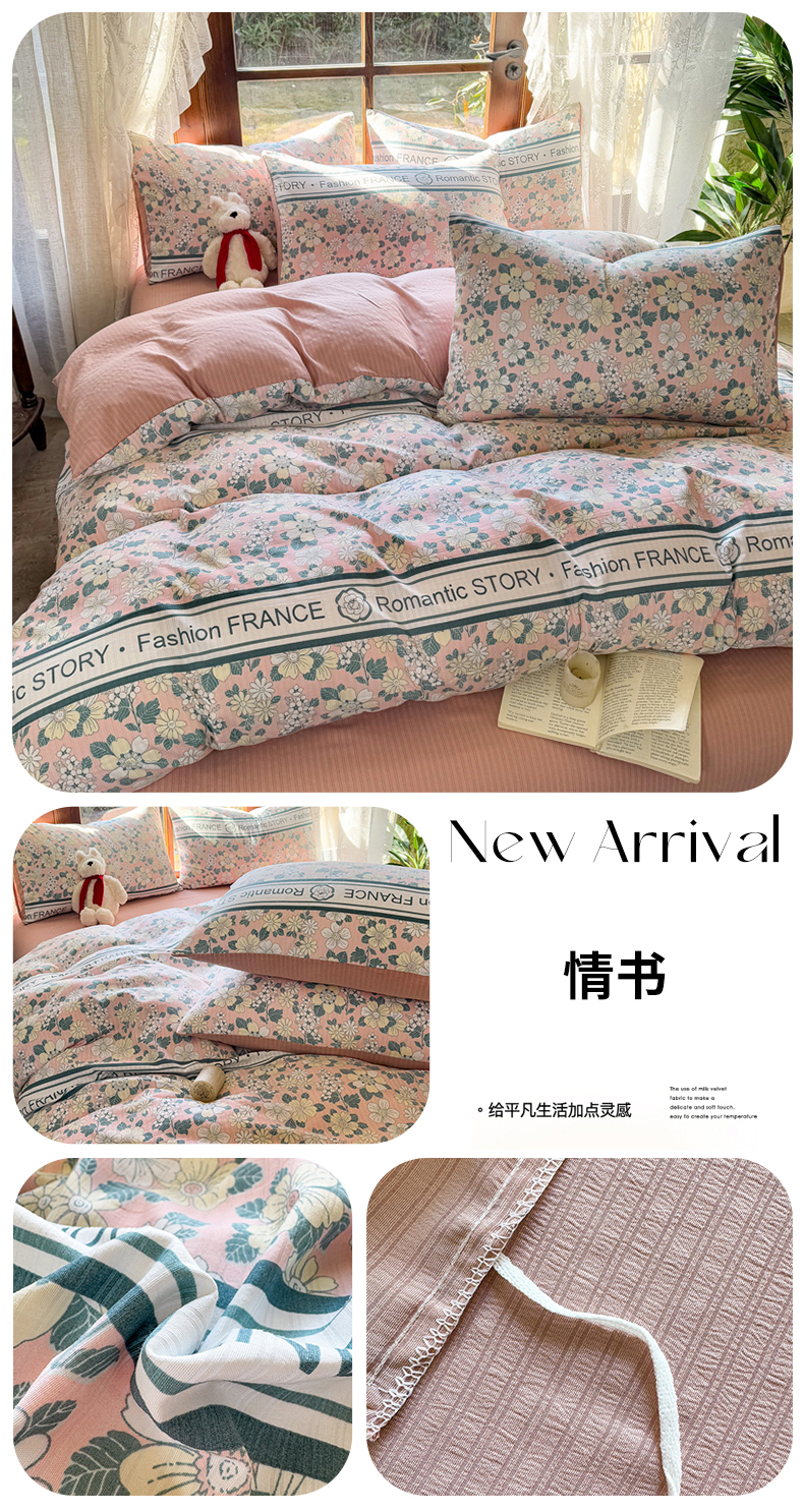 当前位置: 91家纺网 > 商品网购 > 床品套件 > 四件套 > 其它四件套 > 晚爱家纺(原晚安家居) 2025新款A类双层纱有氧提花彩竺棉小竺棉四件套 情书