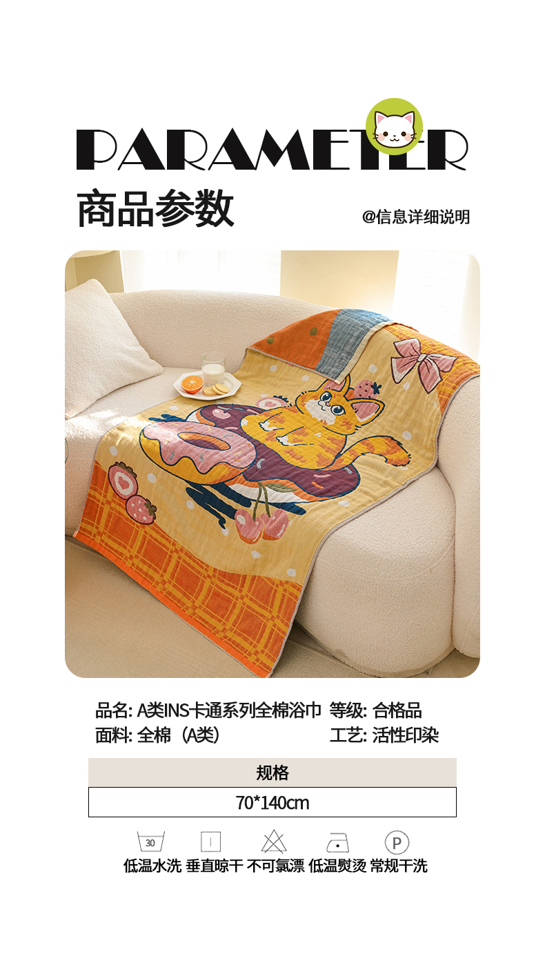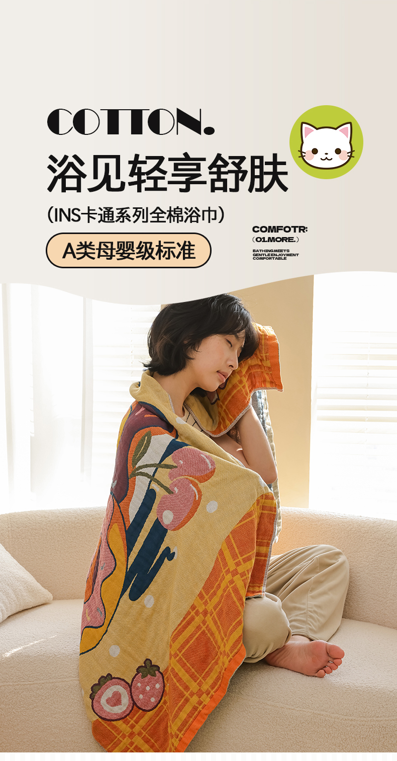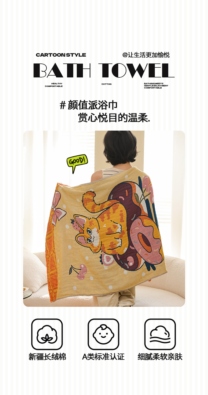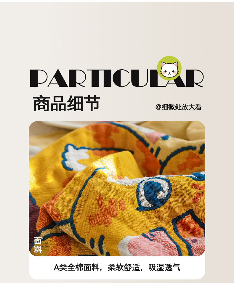 当前位置: 91家纺网 > 商品网购 > 居家日用 > 毛巾/浴巾/浴袍 > 浴巾 > 雯雨家纺 2025新款亲肤可爱全棉A类纱布浴巾 好运小猫