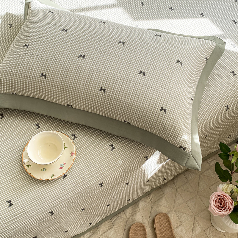 享受云端的柔软,是霎那间的心动~ 面料超软糯、、绗缝设计不易跑棉,贴身柔软又舒适,告别床单的褶皱与烦恼,法式小碎花。享受视觉的美感。沉浸式的入睡,仿佛进了森林氧吧。采用整张超细中空纤维棉 久用不板结 无甲醛,无芳香胺。婴幼儿可用