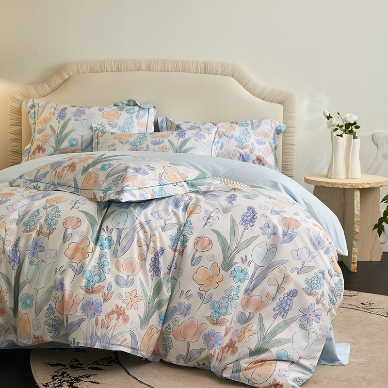 (总)薏思家纺 2025新款全棉100支数码印花生态磨毛轻奢款四件套-珍珠纽扣系列,花弄影-青,花弄影-玉,花弄影-紫,紫纱春日