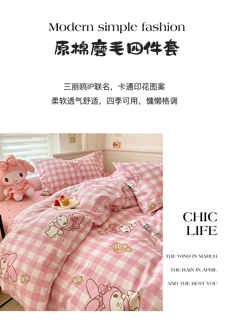当前位置: 91家纺网 > 商品网购 > 床品套件 > 四件套 > 全棉普通四件套 > (买家秀 爆款花色不断货)A类母婴级纯棉磨毛四件套简约纯棉全棉磨毛四件套三丽鸥磨毛四件套纯棉全棉原棉 格子美乐蒂