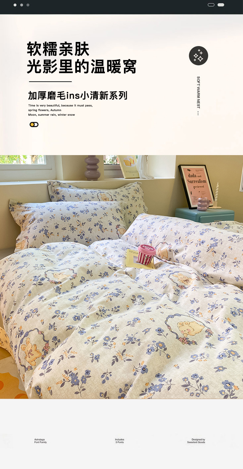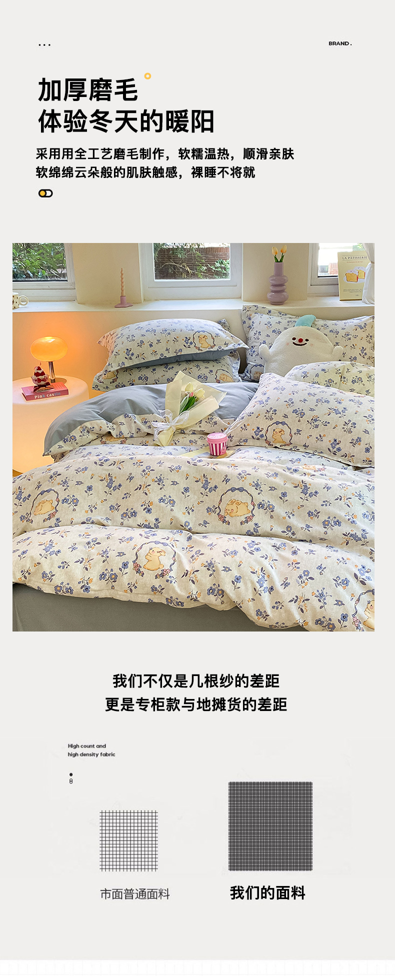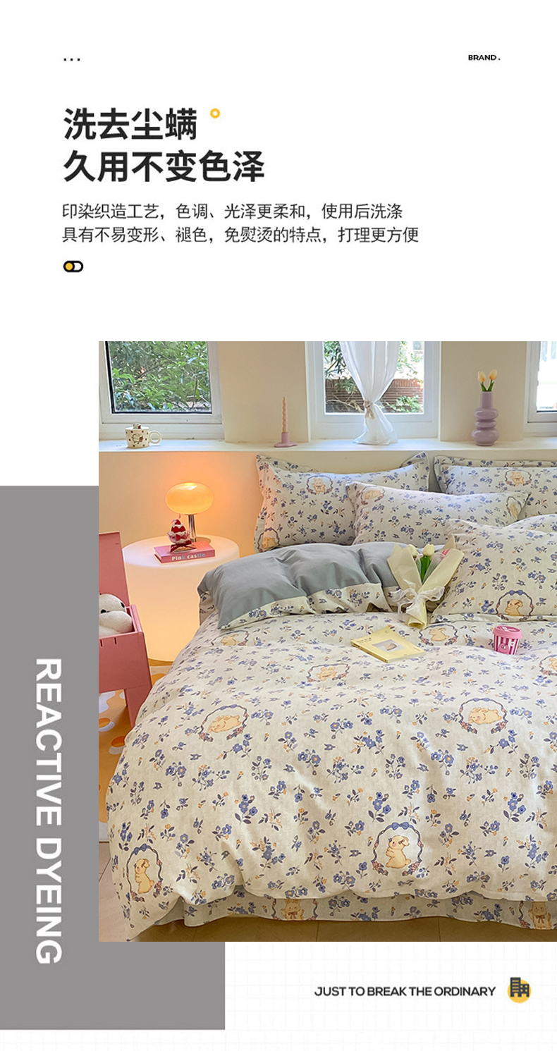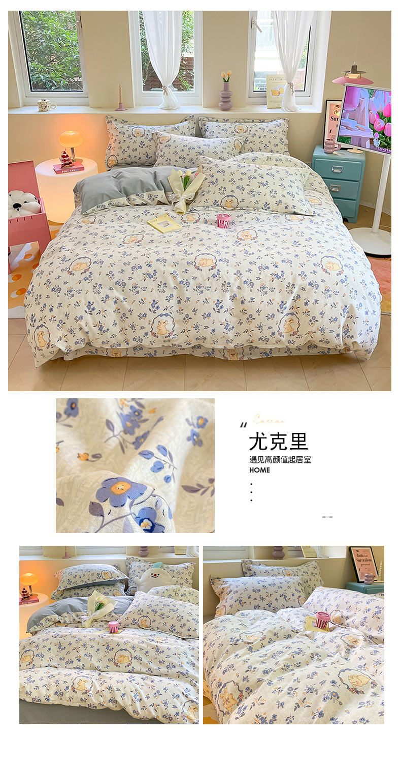 当前位置: 91家纺网 > 商品网购 > 床品套件 > 四件套 > 磨毛活性四件套 > (买家秀 爆款花色不断货)A类母婴级纯棉磨毛四件套简约可爱风纯棉四件套全棉四件套磨毛三件套 尤克里