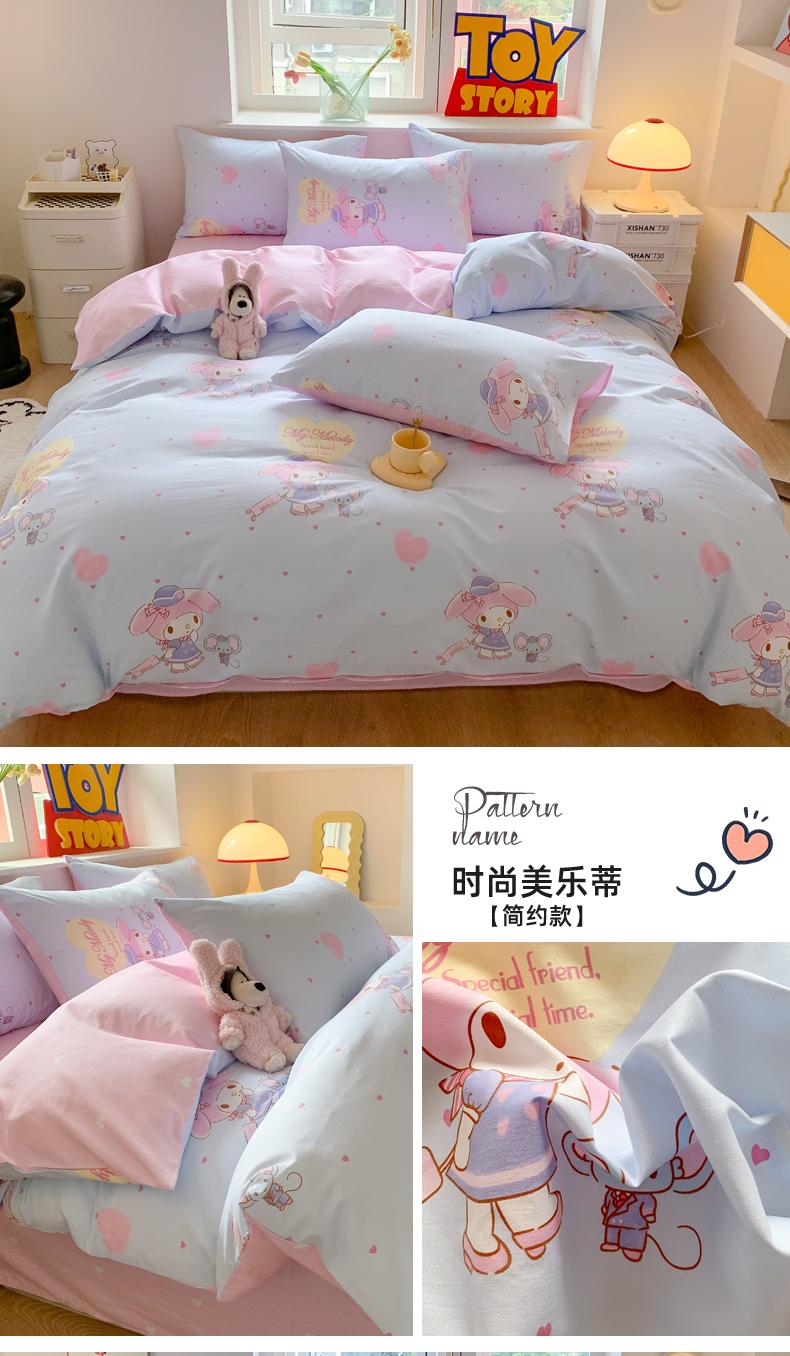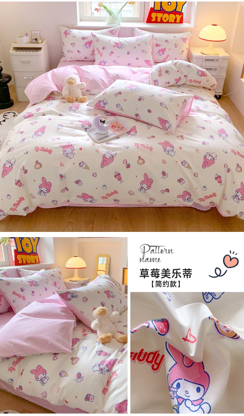 (总)(买家秀 爆款花型 不断货)正版三丽鸥四件套库咯米13372纯棉全棉四件套儿童三件套学生宿舍三件套