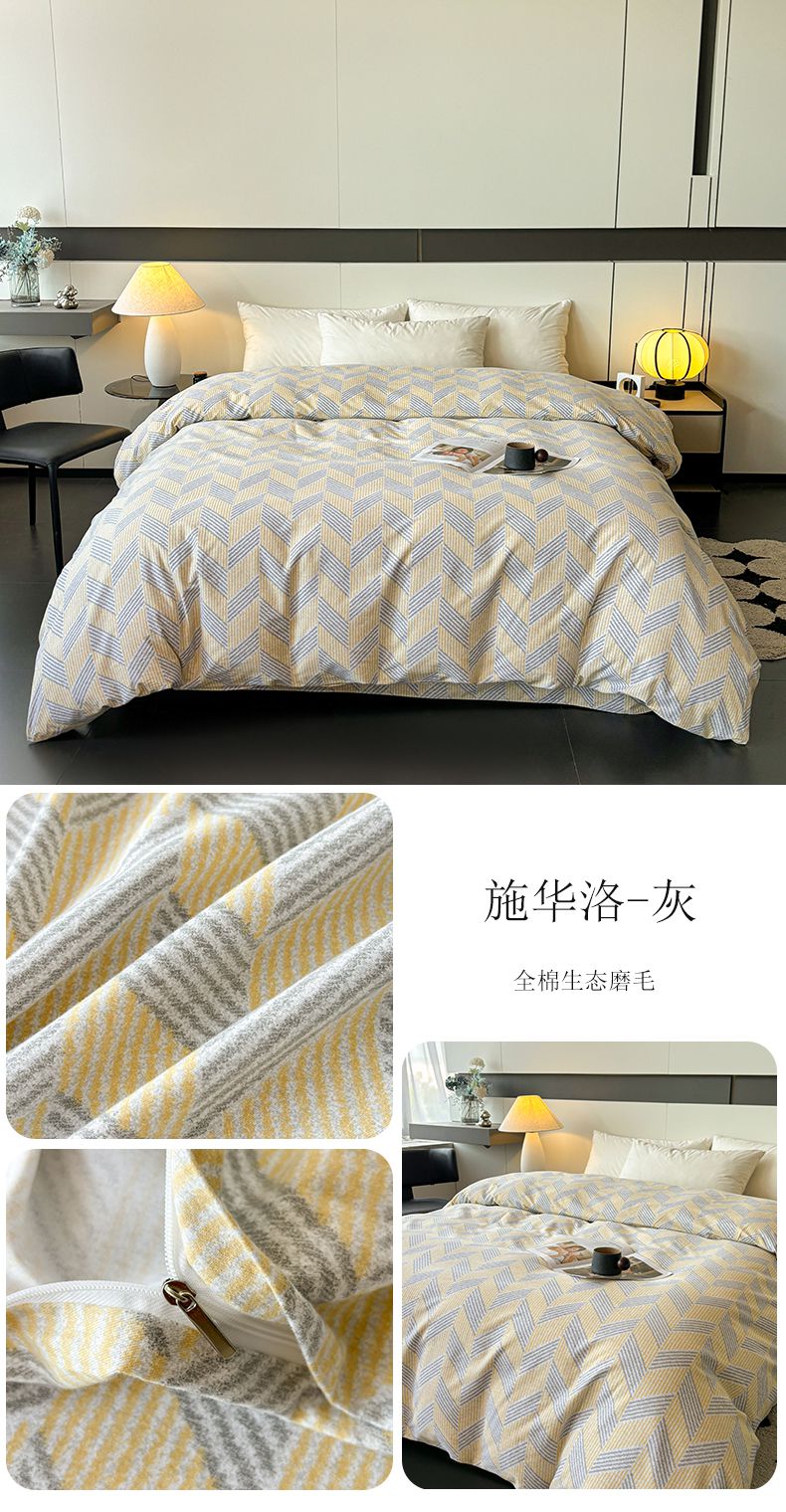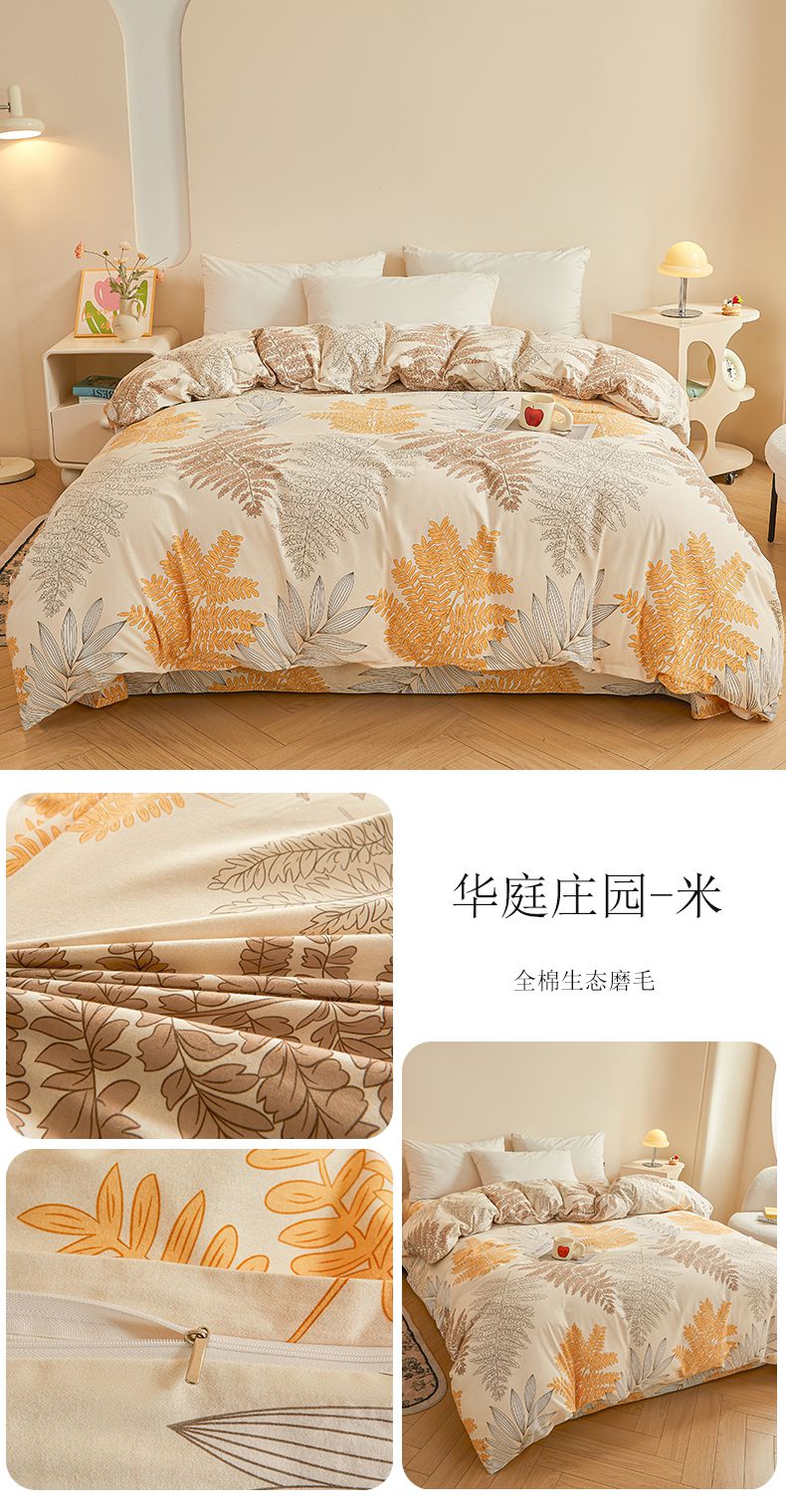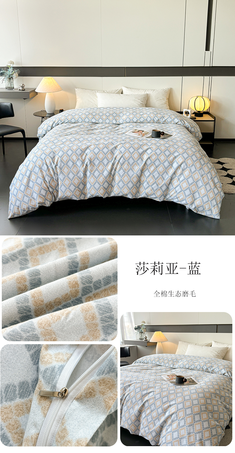 (总)(买家秀 长期款不断货)100s高支密新疆长绒棉磨毛印花被套高色织磨毛床单磨毛床笠磨毛三件套-被套