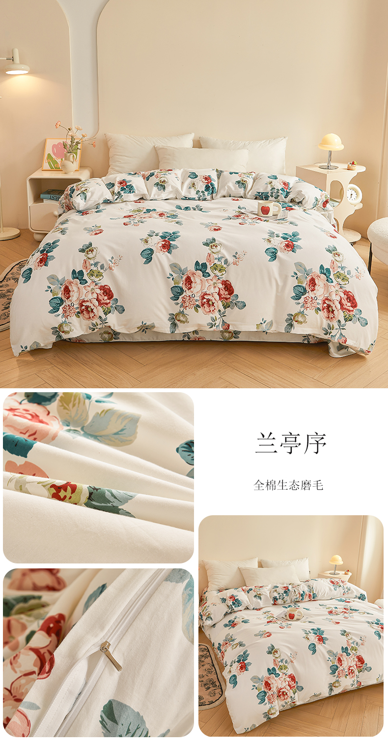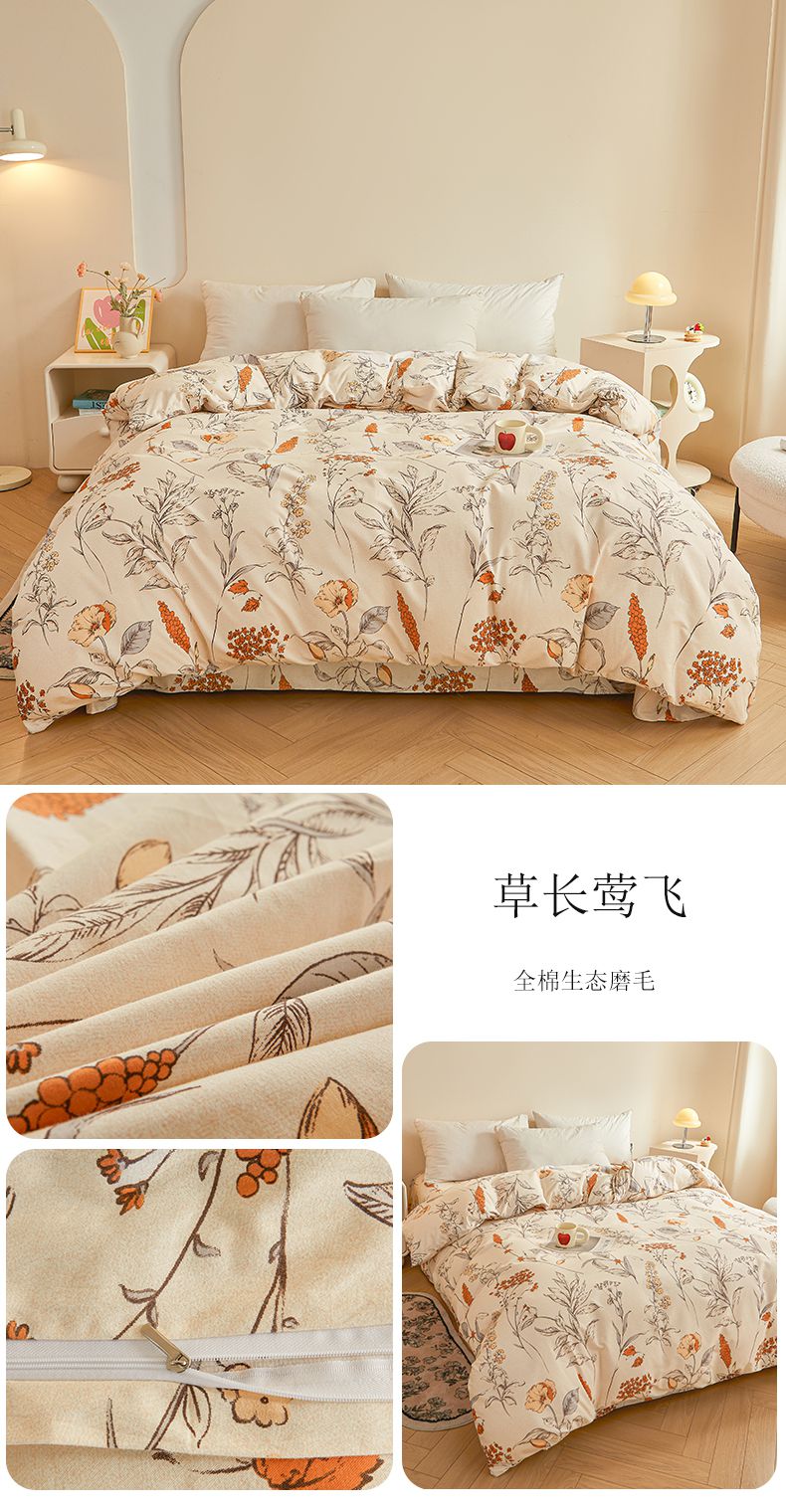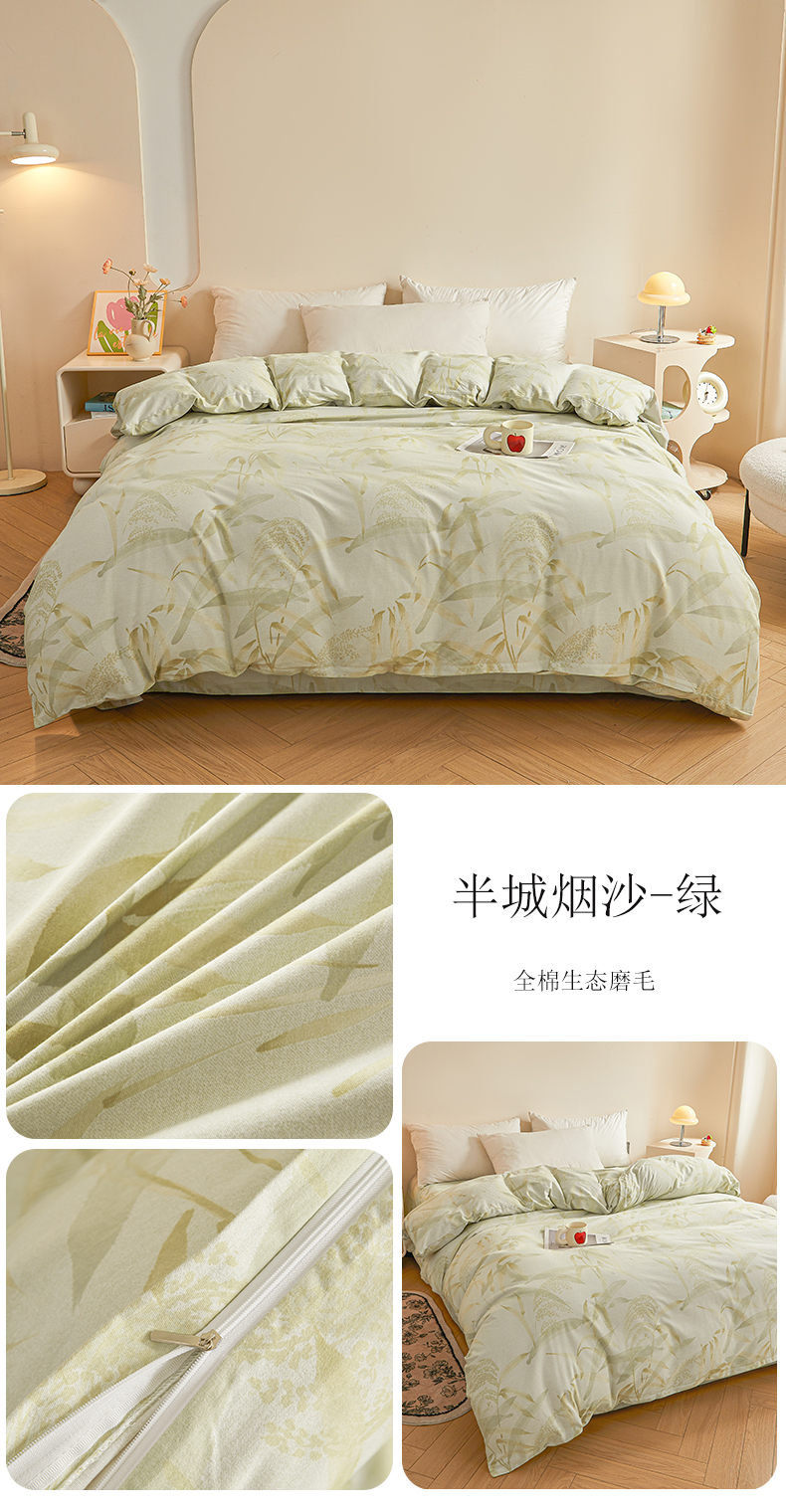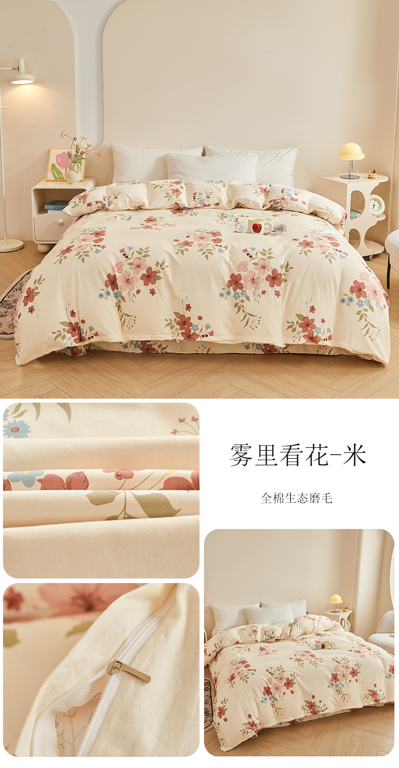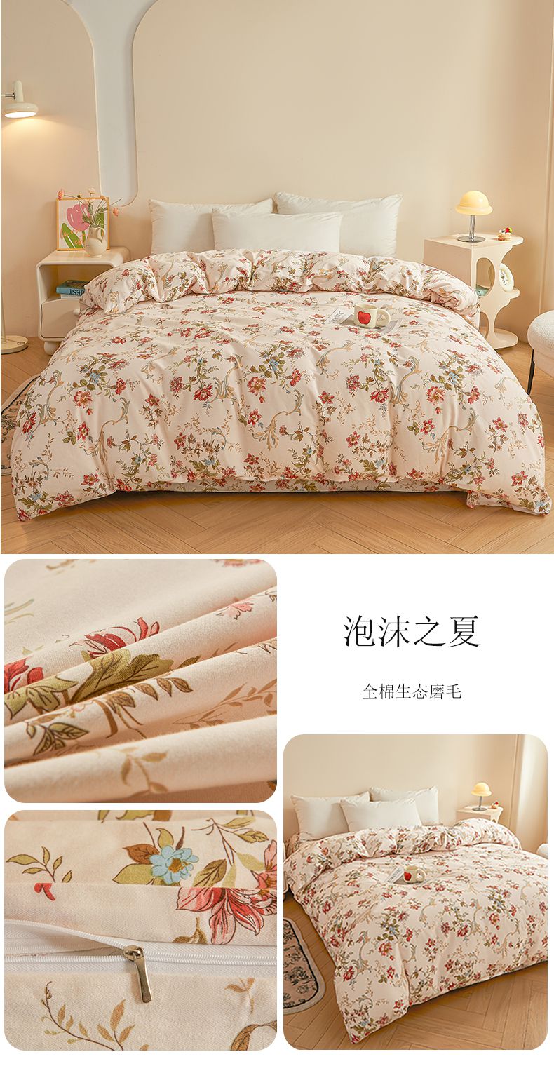 商品名称:(总)(买家秀 长期款不断货)100s高支密新疆长绒棉磨毛印花被套高色织磨毛床单磨毛床笠磨毛三件套-被套