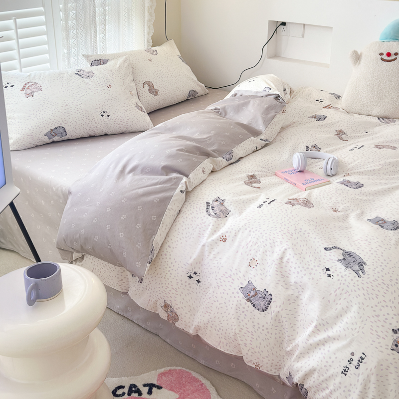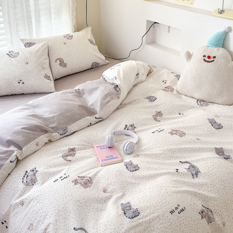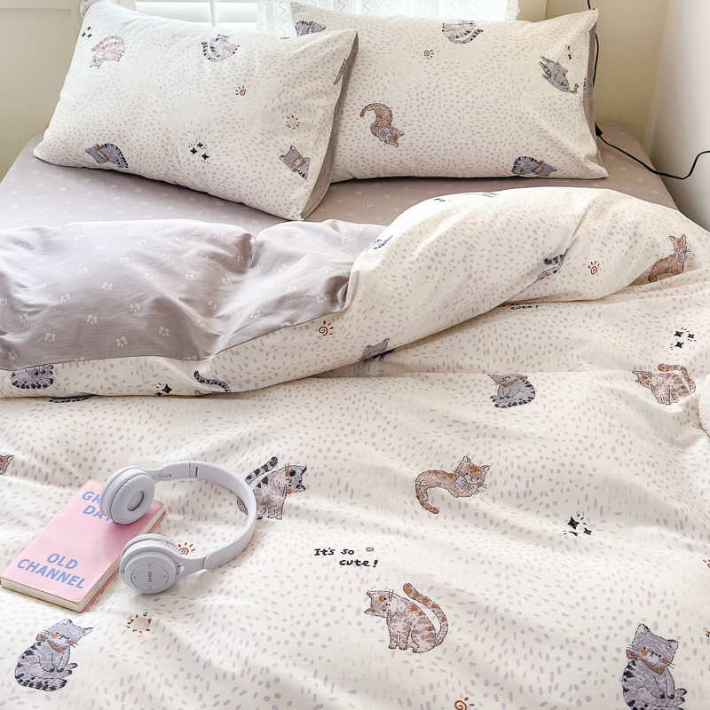 当前位置: 91家纺网 > 商品网购 > 床品套件 > 四件套 > 全棉普通四件套 > (买家秀爆款花型长期款不断货)A类母婴级13372纯棉四件套40支全棉四件套学生三件套宿舍萌趣卡通 千猫之梦