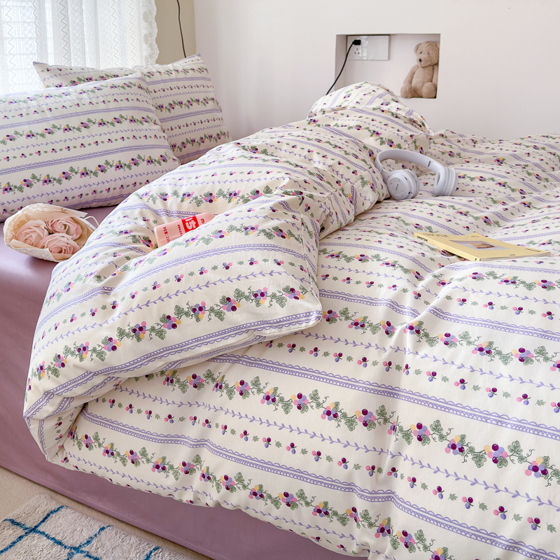 当前位置: 91家纺网 > 商品网购 > 床品套件 > 四件套 > 全棉普通四件套 > (买家秀爆款花型长期款不断货)A类母婴级13372纯棉四件套40支全棉四件套学生三件套花卉简约小清新 小葡萄【100%棉面料 亲肤可裸睡】