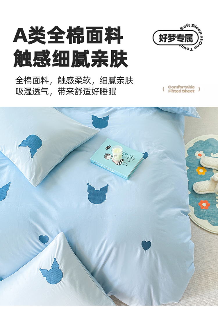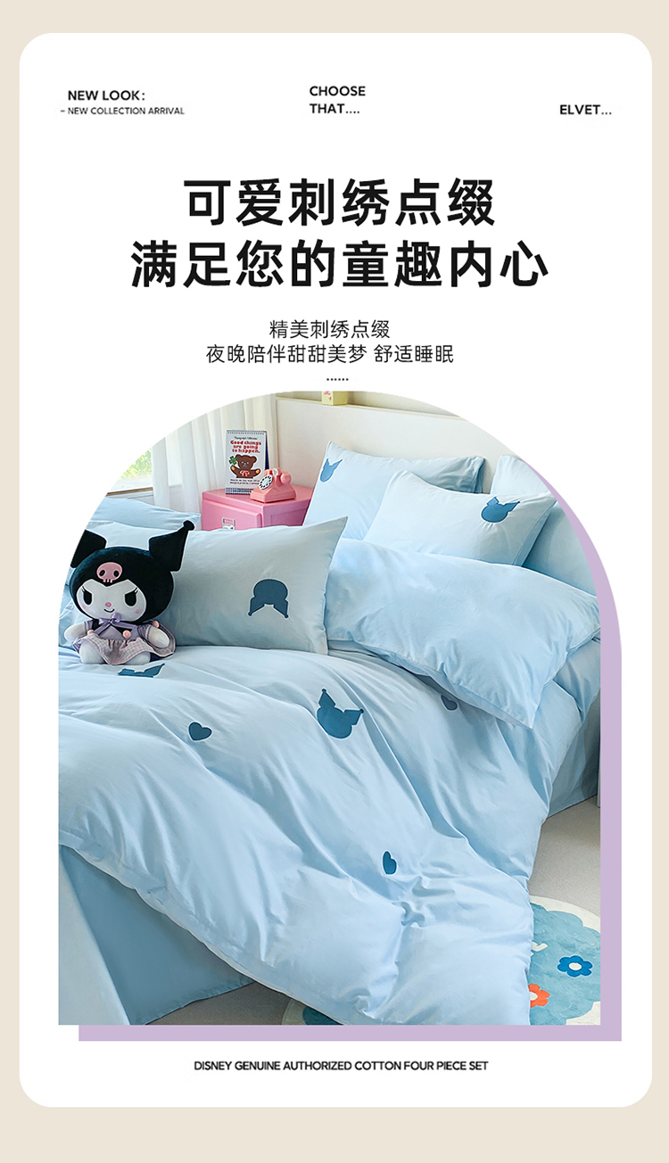 商品名称:(买家秀)(爆款花型长期款不断货)A类全棉贴布绣四件套绣花四件套毛巾绣四件套毛巾绣三件套卡通 酷酷米-蓝