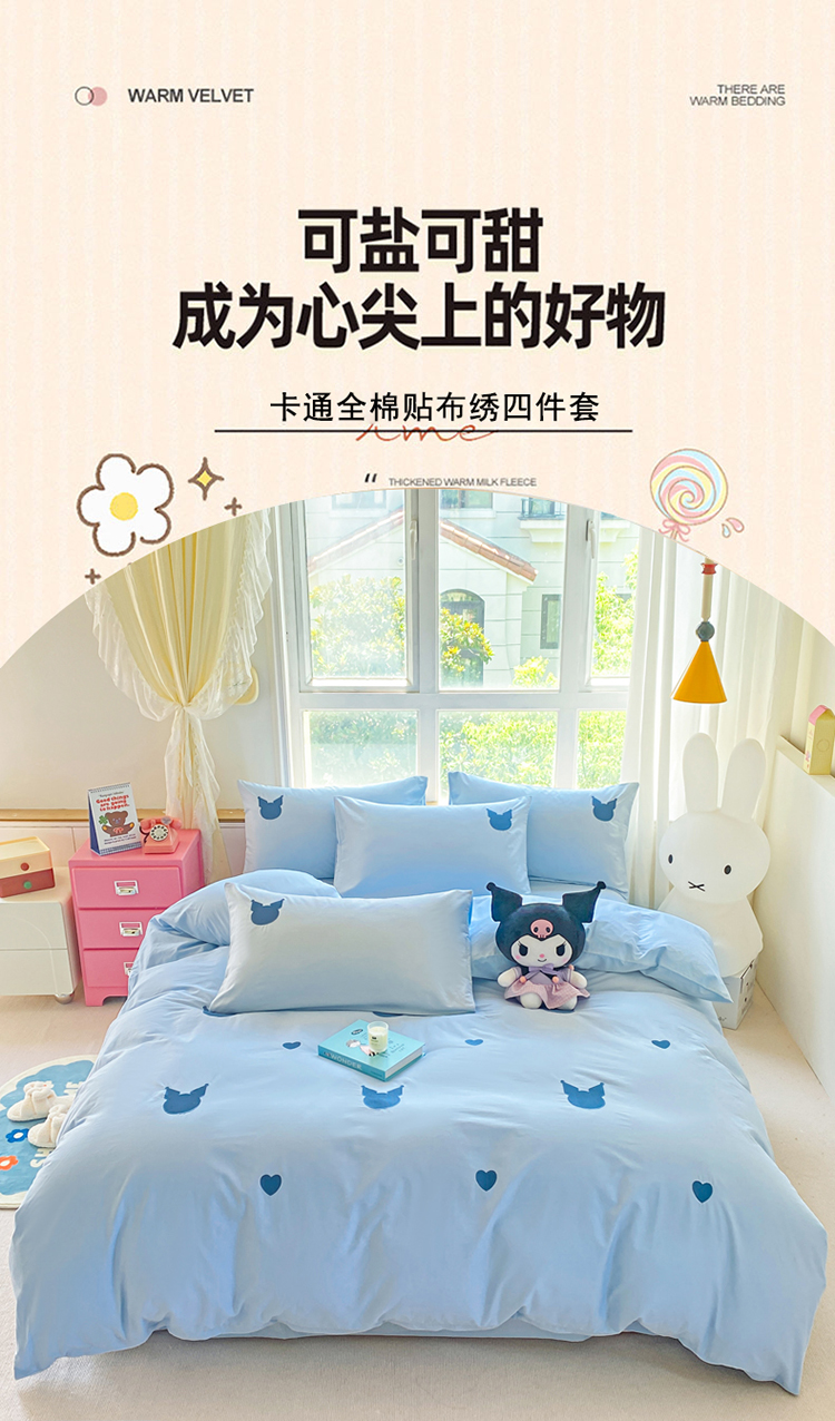 (买家秀)(爆款花型长期款不断货)A类全棉贴布绣四件套绣花四件套毛巾绣四件套毛巾绣三件套卡通 酷酷米-蓝