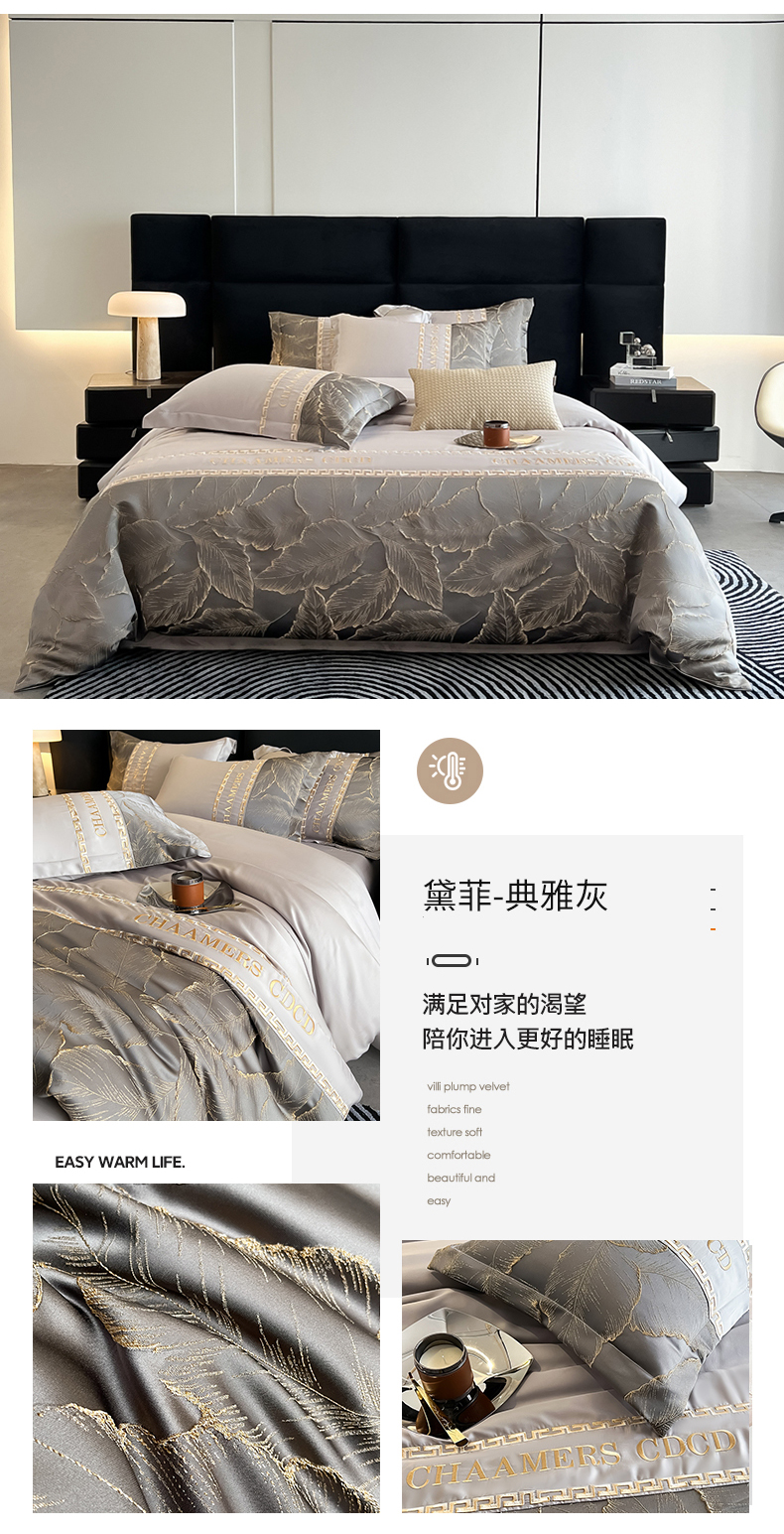 (总)水云缦 2025新款双拼角牛奶绒绣花四件套系列,浅灰-茶褐色,浅卡其-褐色,奶白-褐色,樱粉-茶褐色,褐色-浅卡其