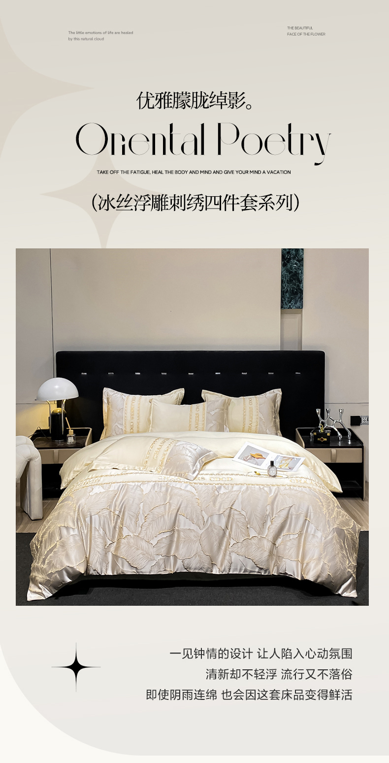 商品名称:(总)水云缦 2024新款黛菲系列冰丝浮雕刺绣天丝四件套【带包装】