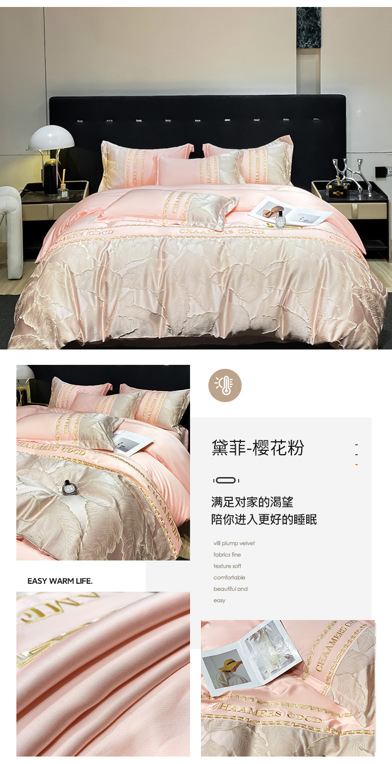 (总)水云缦 2025新款230克全消光牛奶绒绣花四件套-樱花系列,樱花-米白,樱花-高级灰,樱花-浅紫,樱花-浅粉