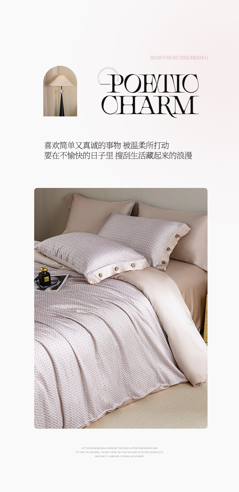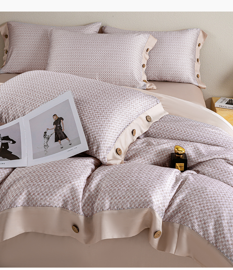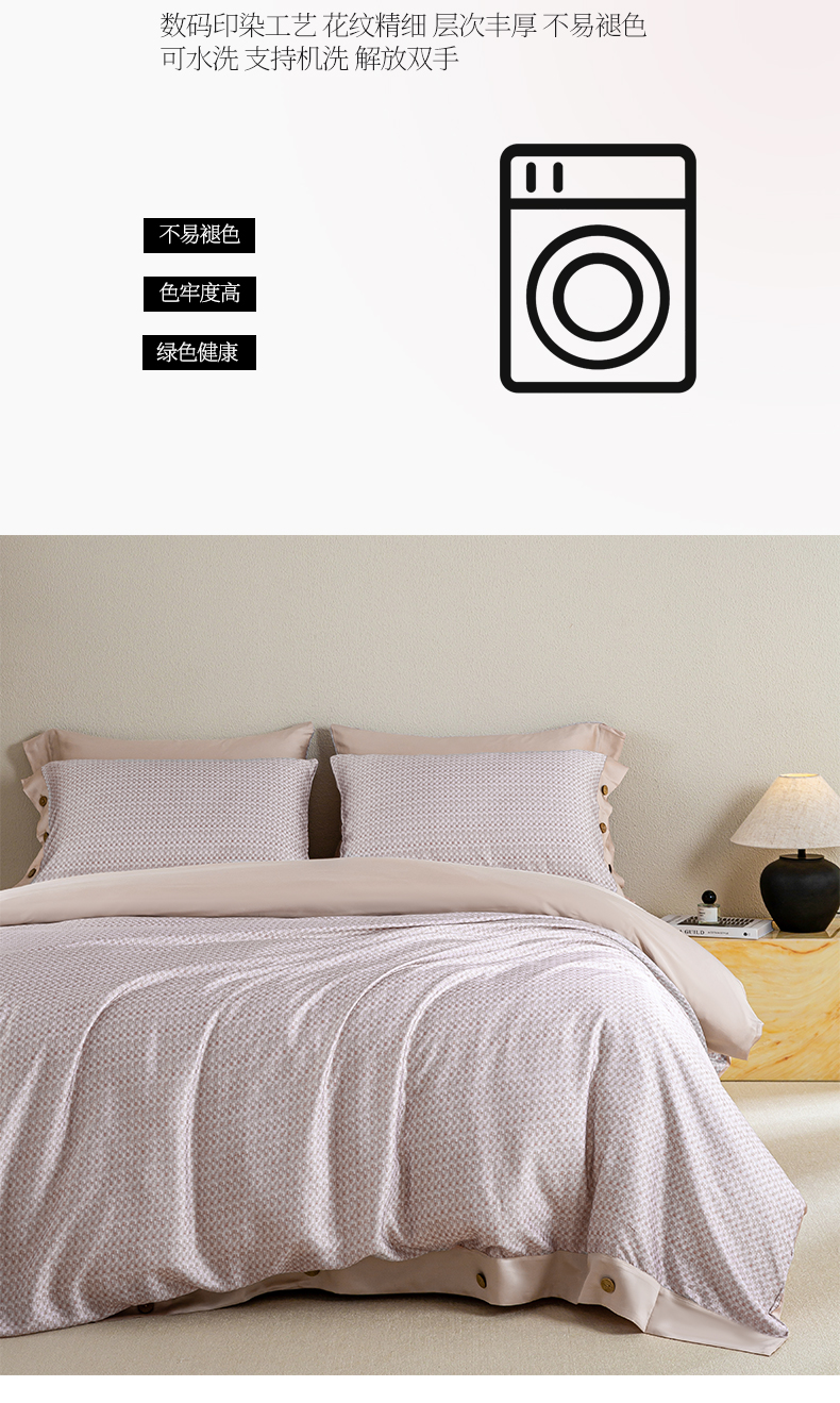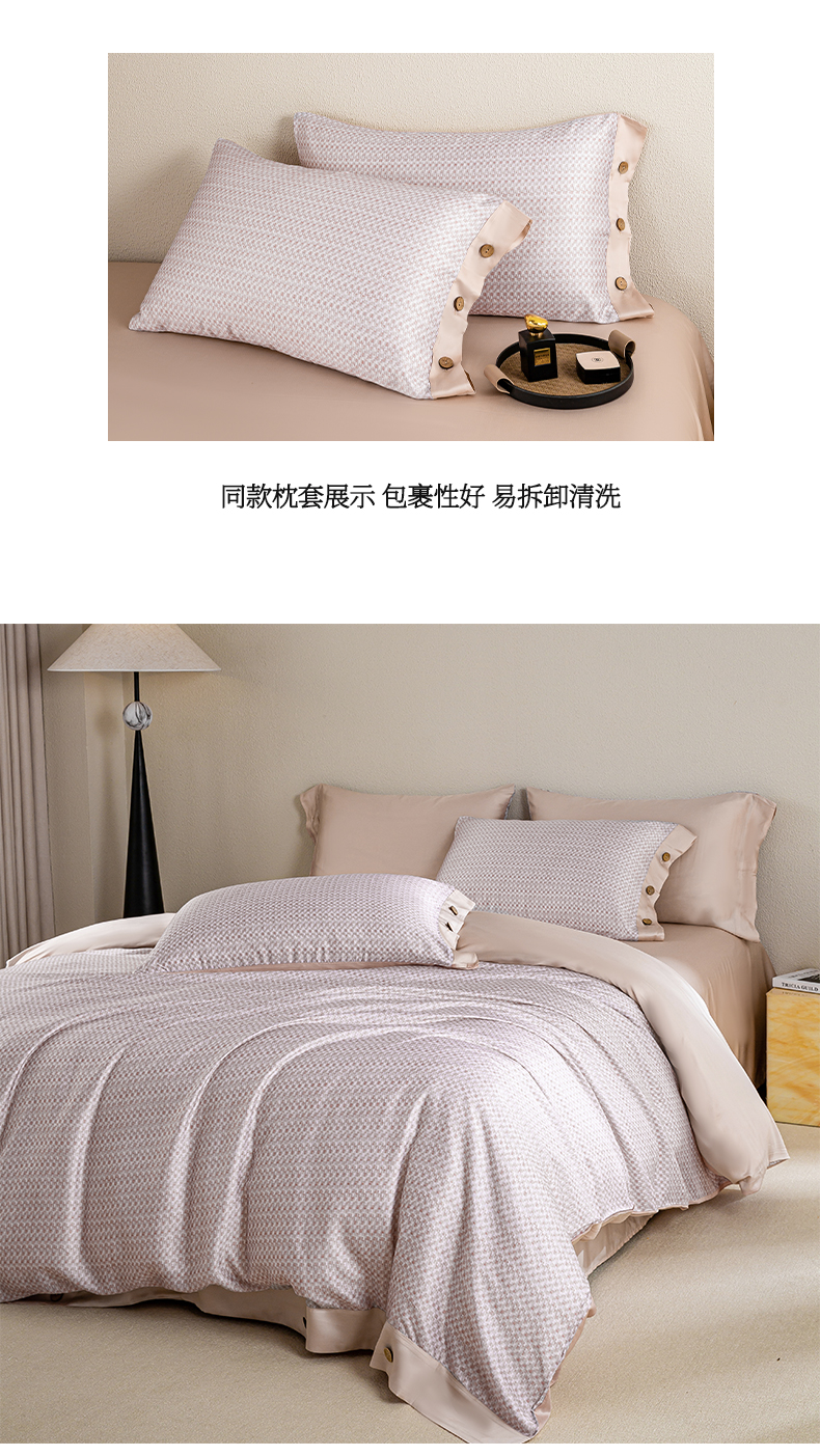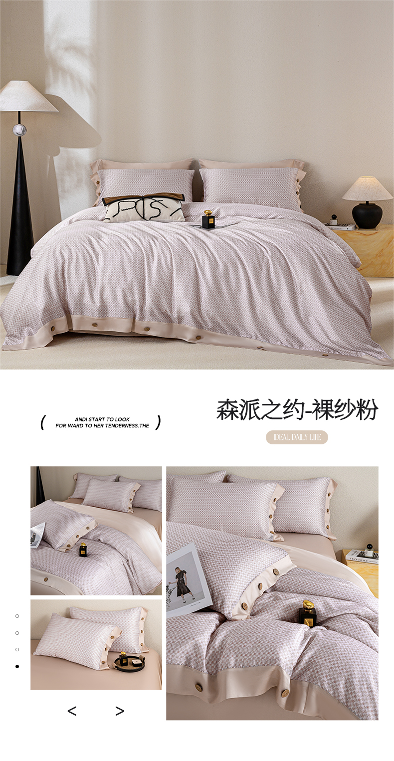 帅露2025新款60S莱赛尔纽扣款四件套 森派之约-裸纱粉