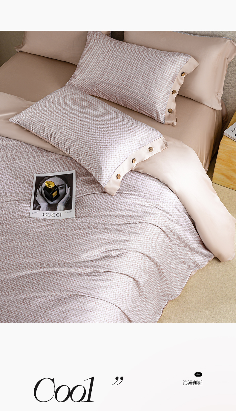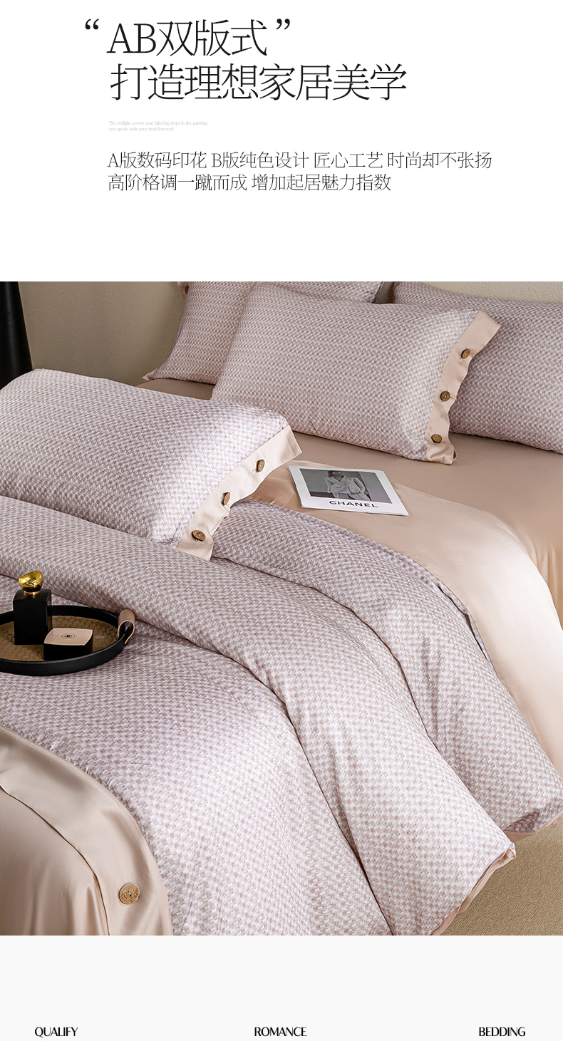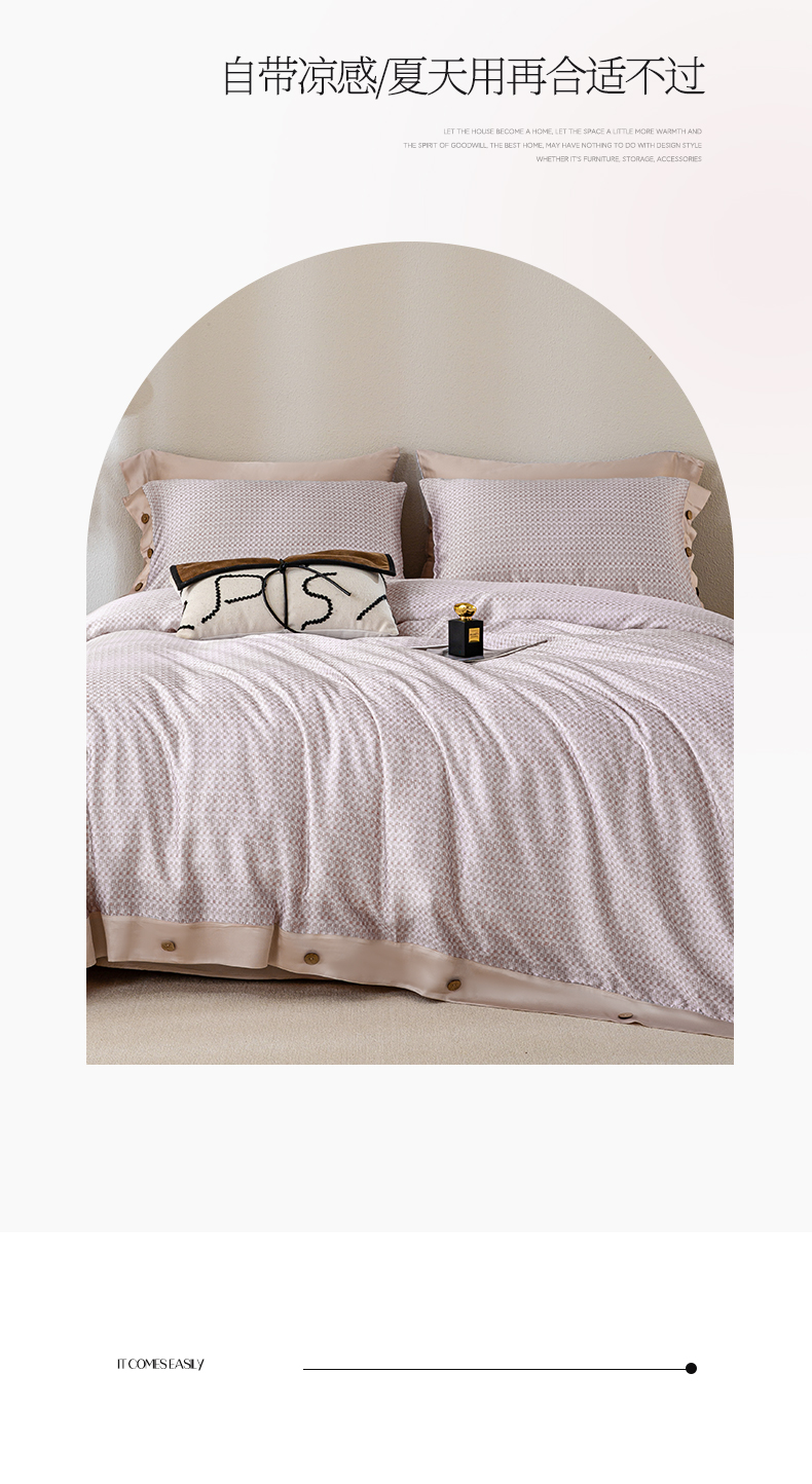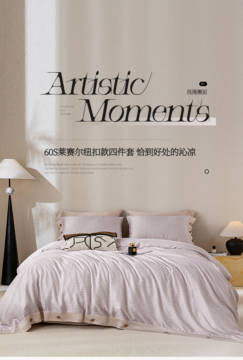 帅露2025新款60S莱赛尔纽扣款四件套 森派之约-裸纱粉