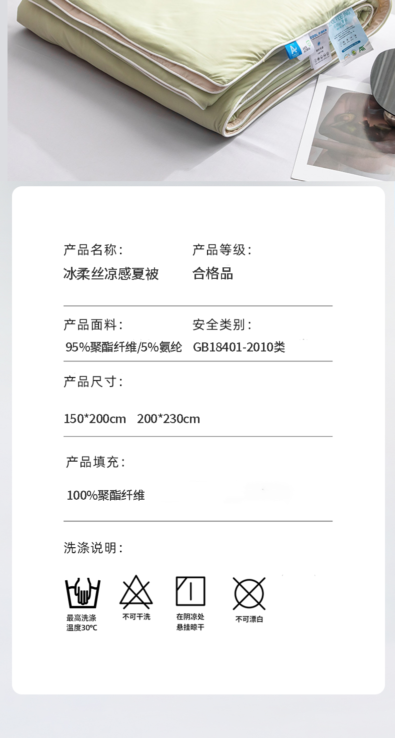 商品名称:金喜 2025新款冰柔丝凉感夏被涤氨纶冰丝夏被夏天薄被子 牛油果绿