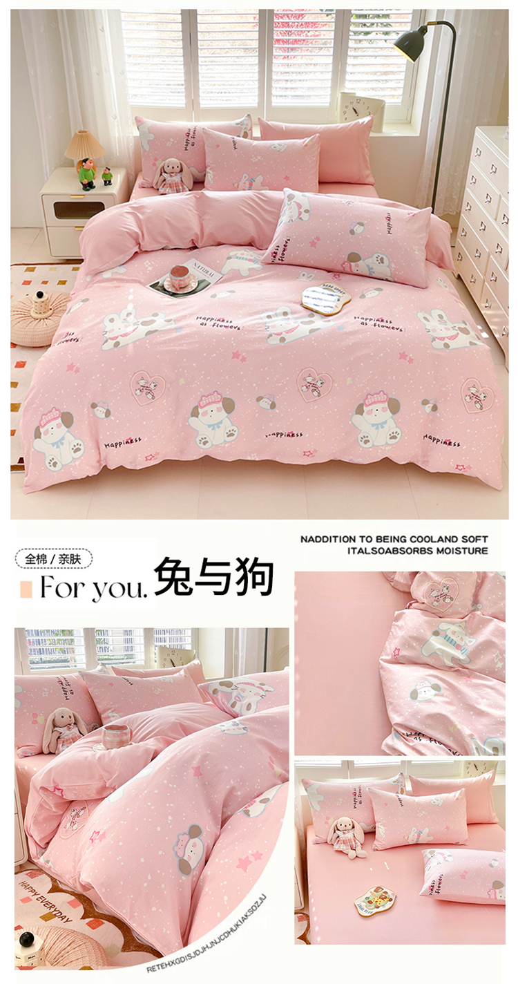 • 91家纺网 家纺一手货源 找家纺 丫丫家纺 2025全棉13070单床单床笠纯棉单品枕套床笠床单(有预缩尺寸 售后无忧 免费提供买家秀) 兔与狗