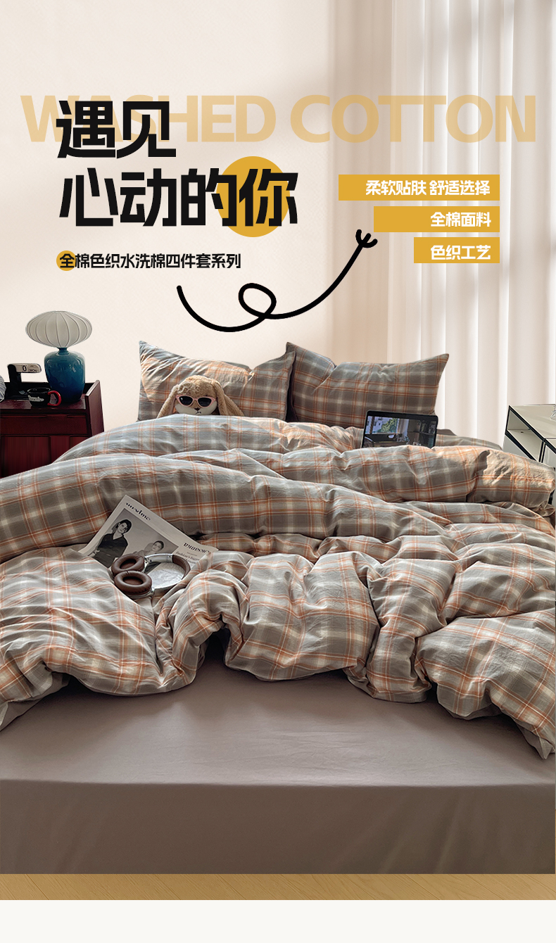 当前位置: 91家纺网 > 商品网购 > 床品套件 > 四件套 > 全棉普通四件套 > 雅居纺家纺 2025全棉色织水洗棉四件套 洛卡灰