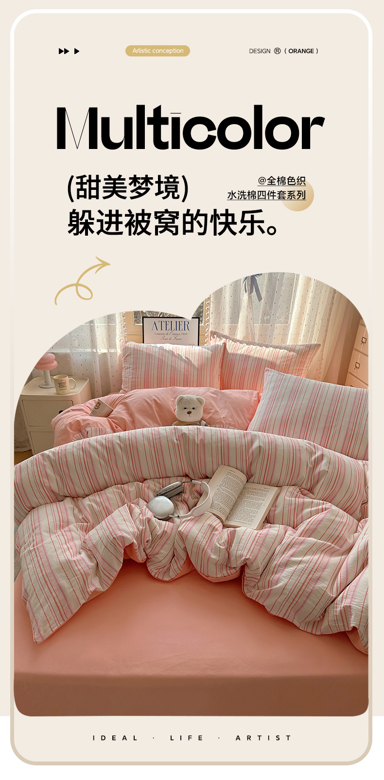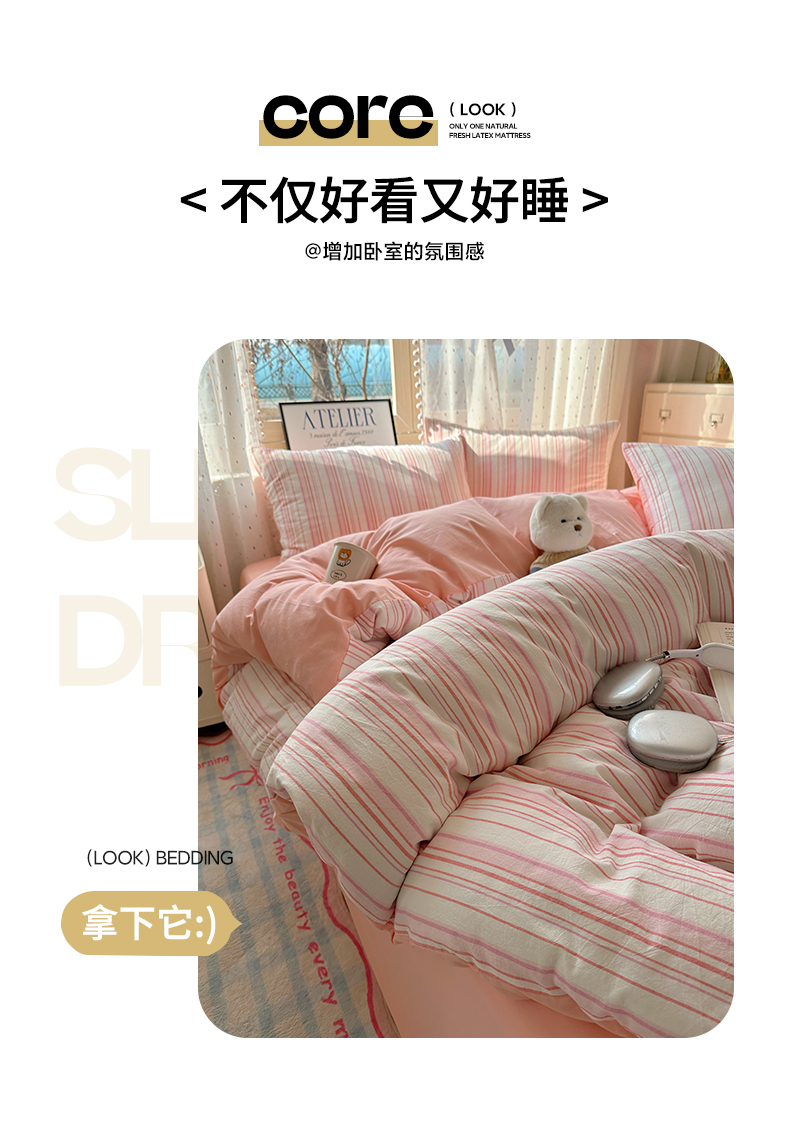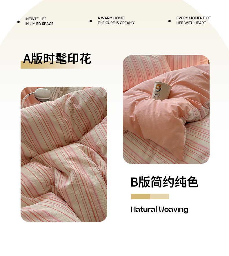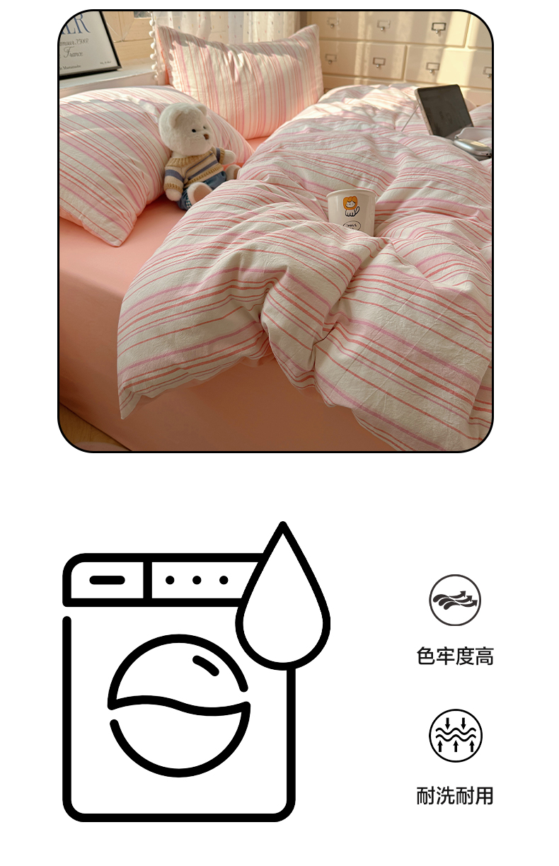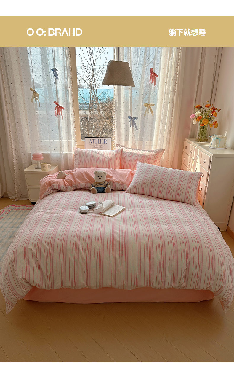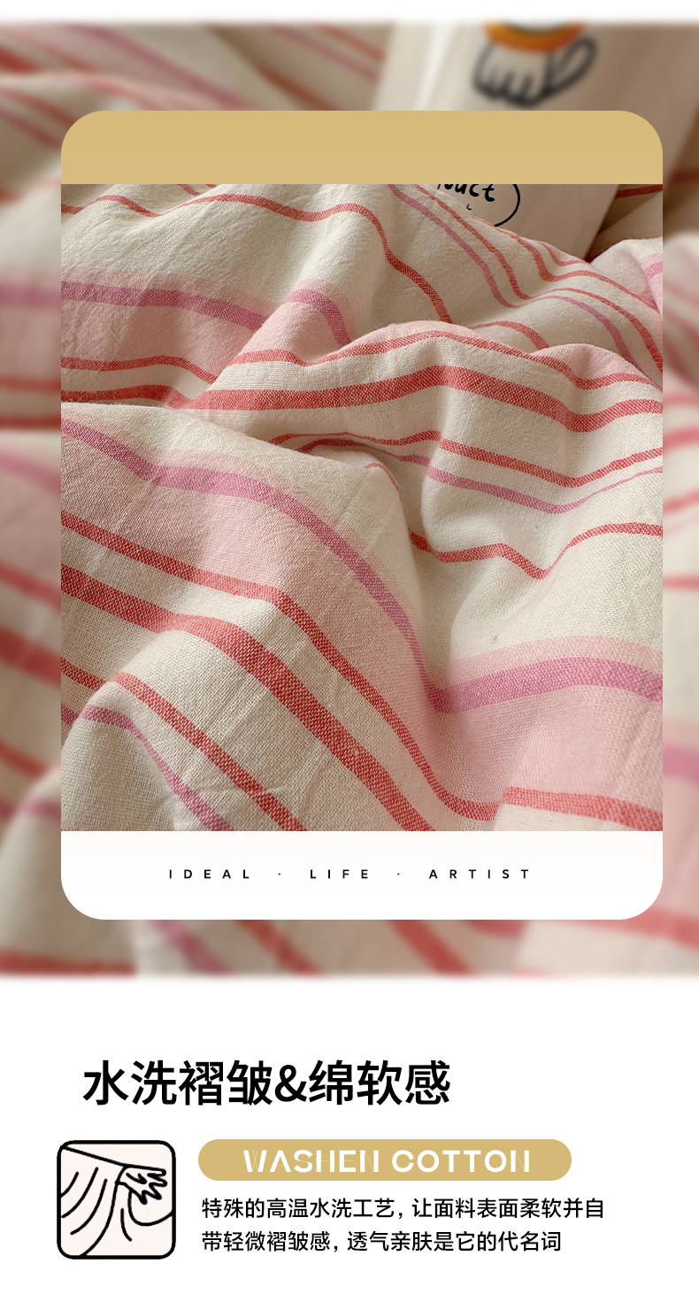 当前位置: 91家纺网 > 商品网购 > 床品套件 > 四件套 > 全棉普通四件套 > 雅居纺家纺 2025全棉色织水洗棉四件套 竖条粉