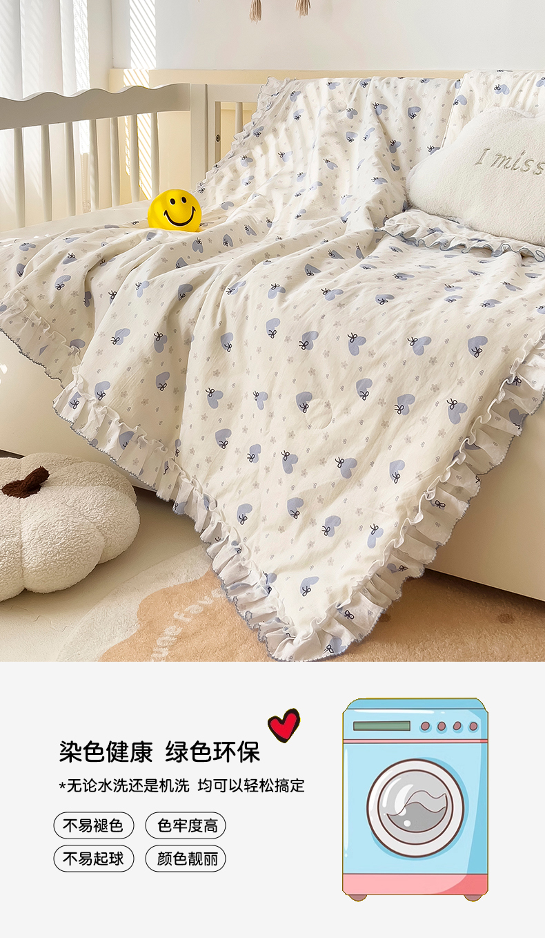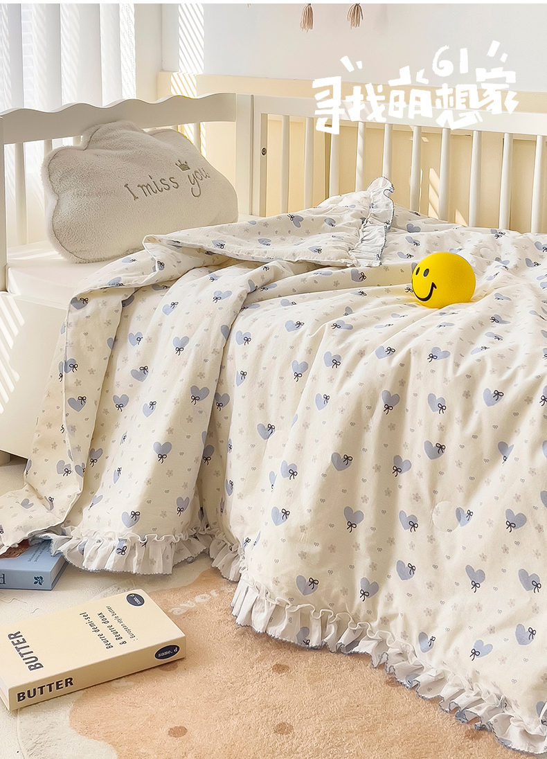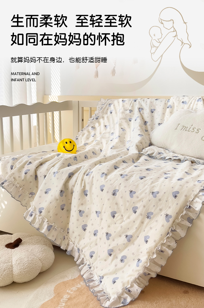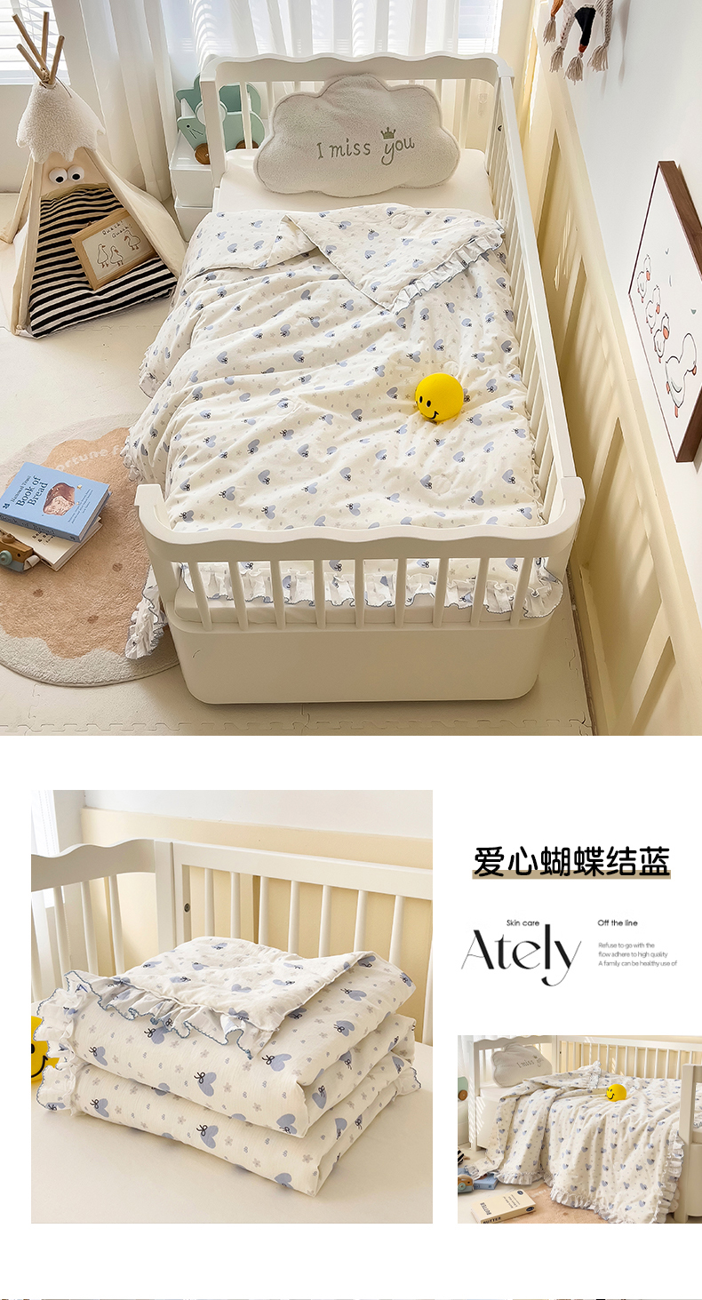 商品名称:御棉坊 2025新款A类泡芙棉儿童夏被 爱心蝴蝶结蓝