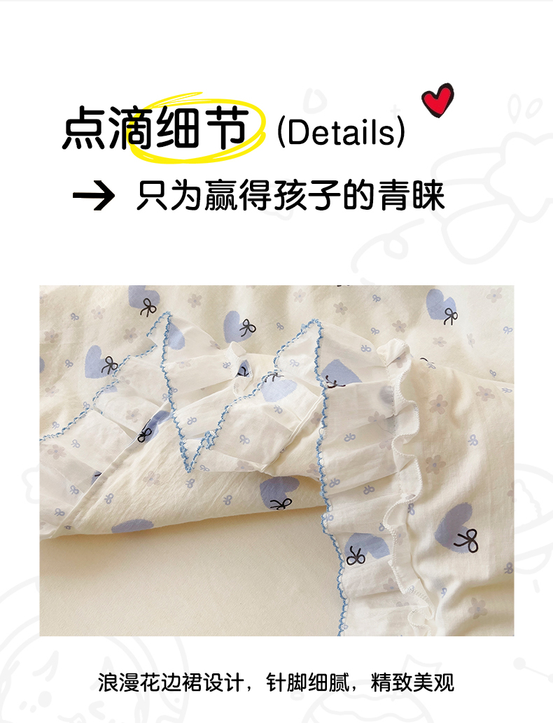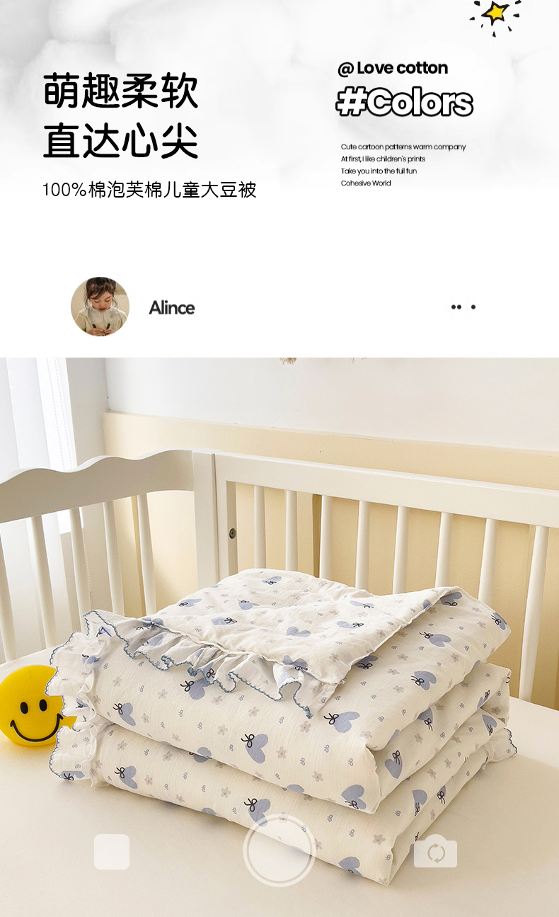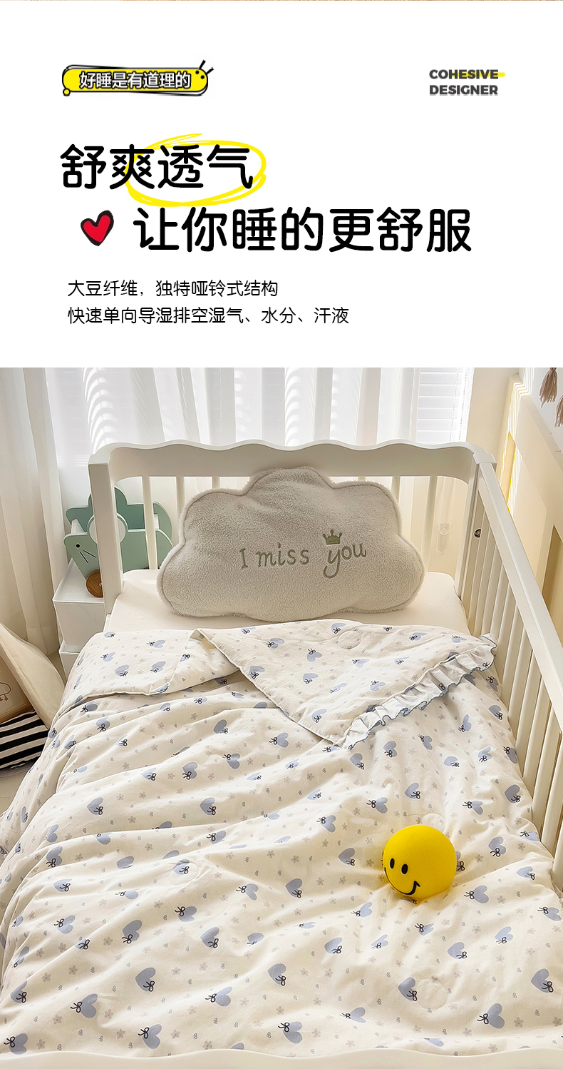 商品名称:御棉坊 2025新款A类泡芙棉儿童夏被 爱心蝴蝶结蓝