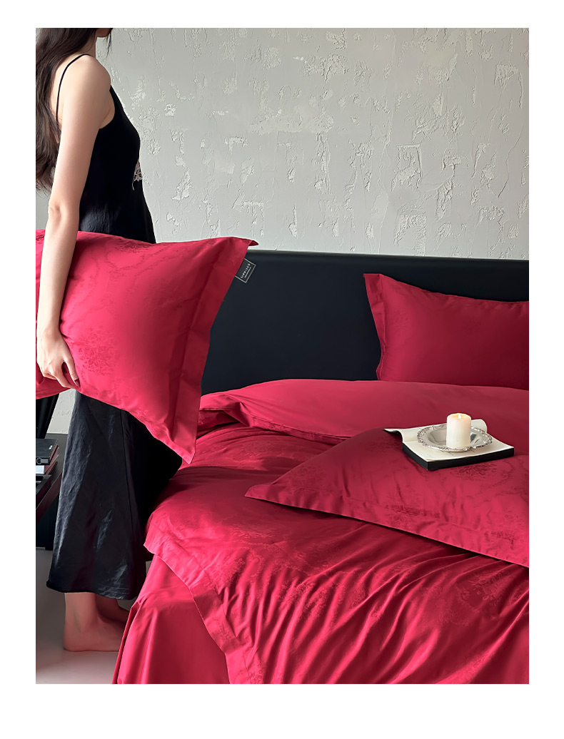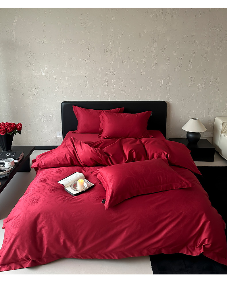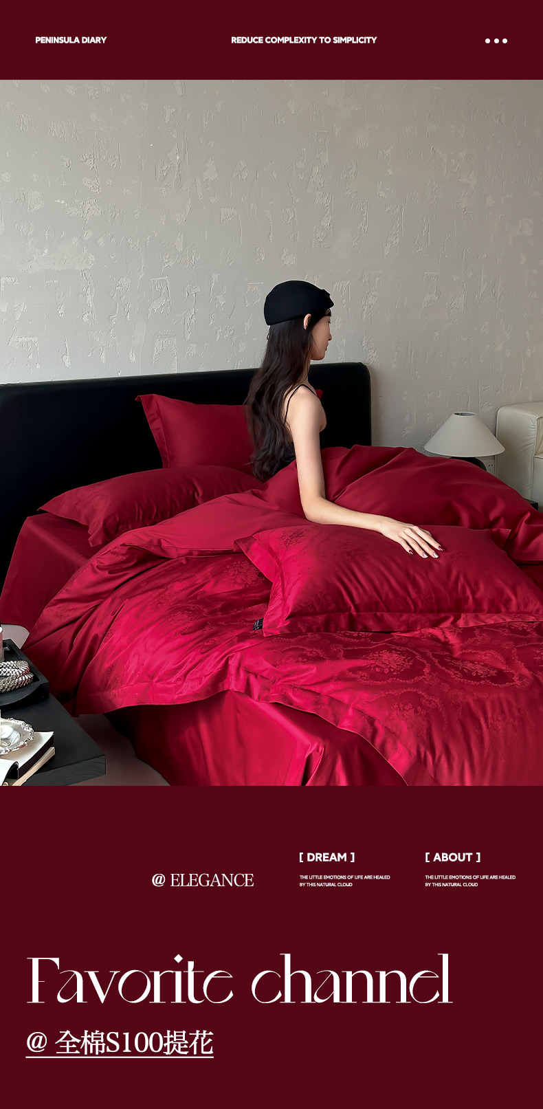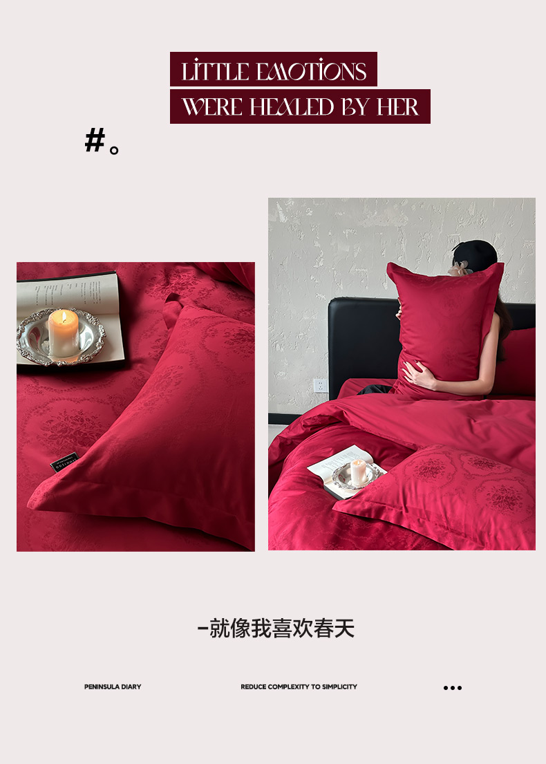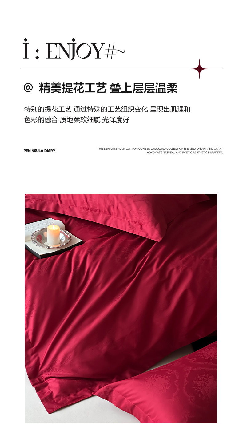 (总)三味舒屋2025春夏新品S50全棉提花婚庆系列四件套杏芙礼朗姆酒红
