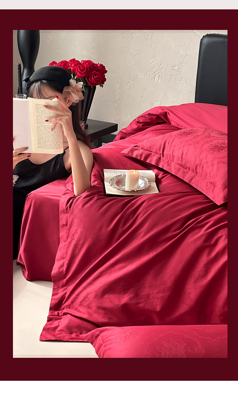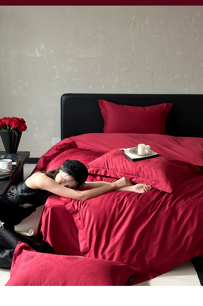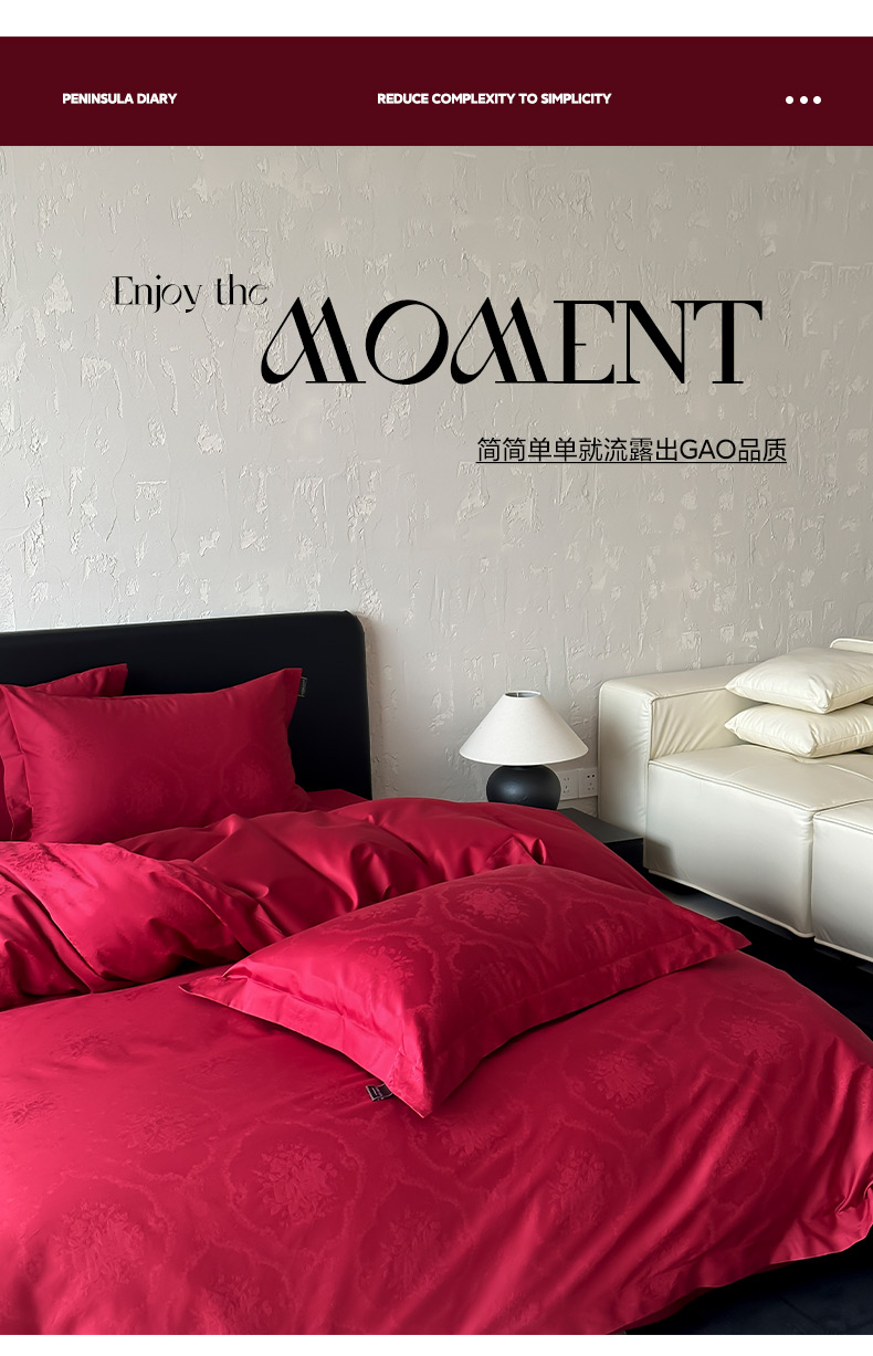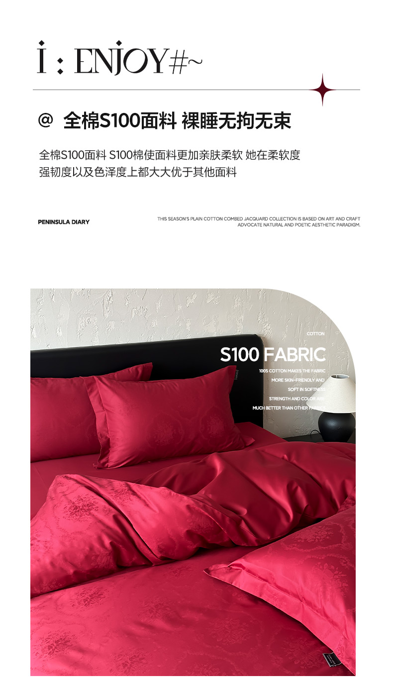 (总)三味舒屋2025春夏新品S50全棉提花婚庆系列四件套杏芙礼朗姆酒红