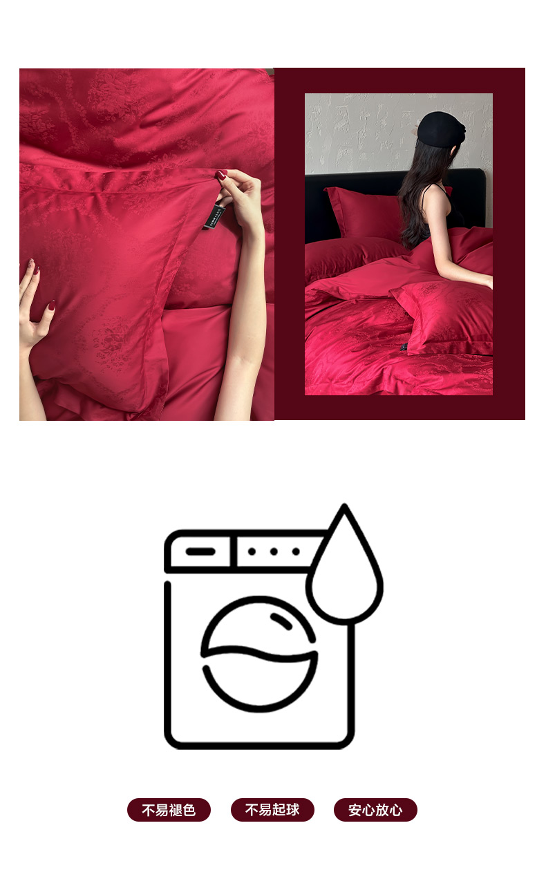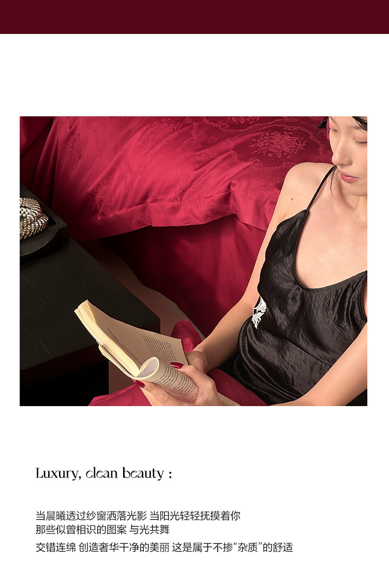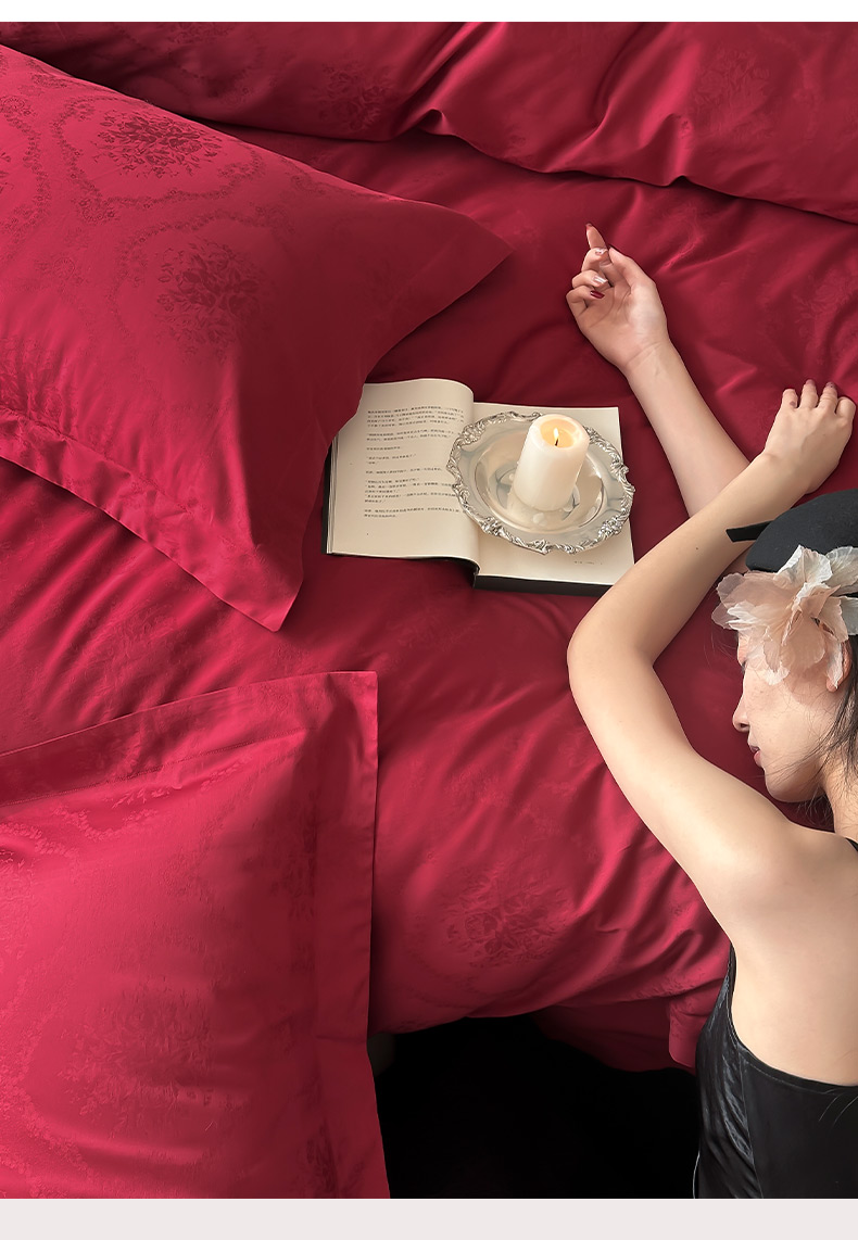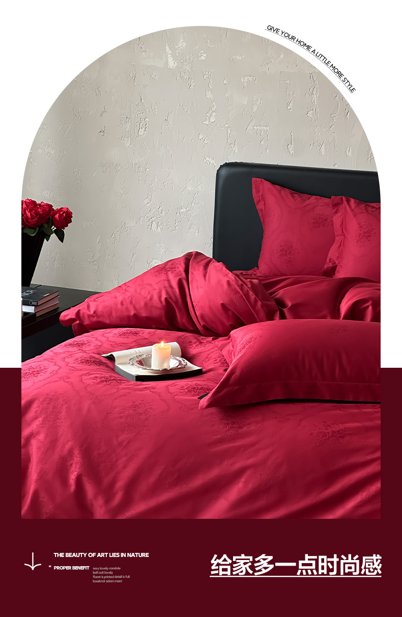 商品名称:(总)三味舒屋2025春夏新品S50全棉提花婚庆系列四件套杏芙礼朗姆酒红