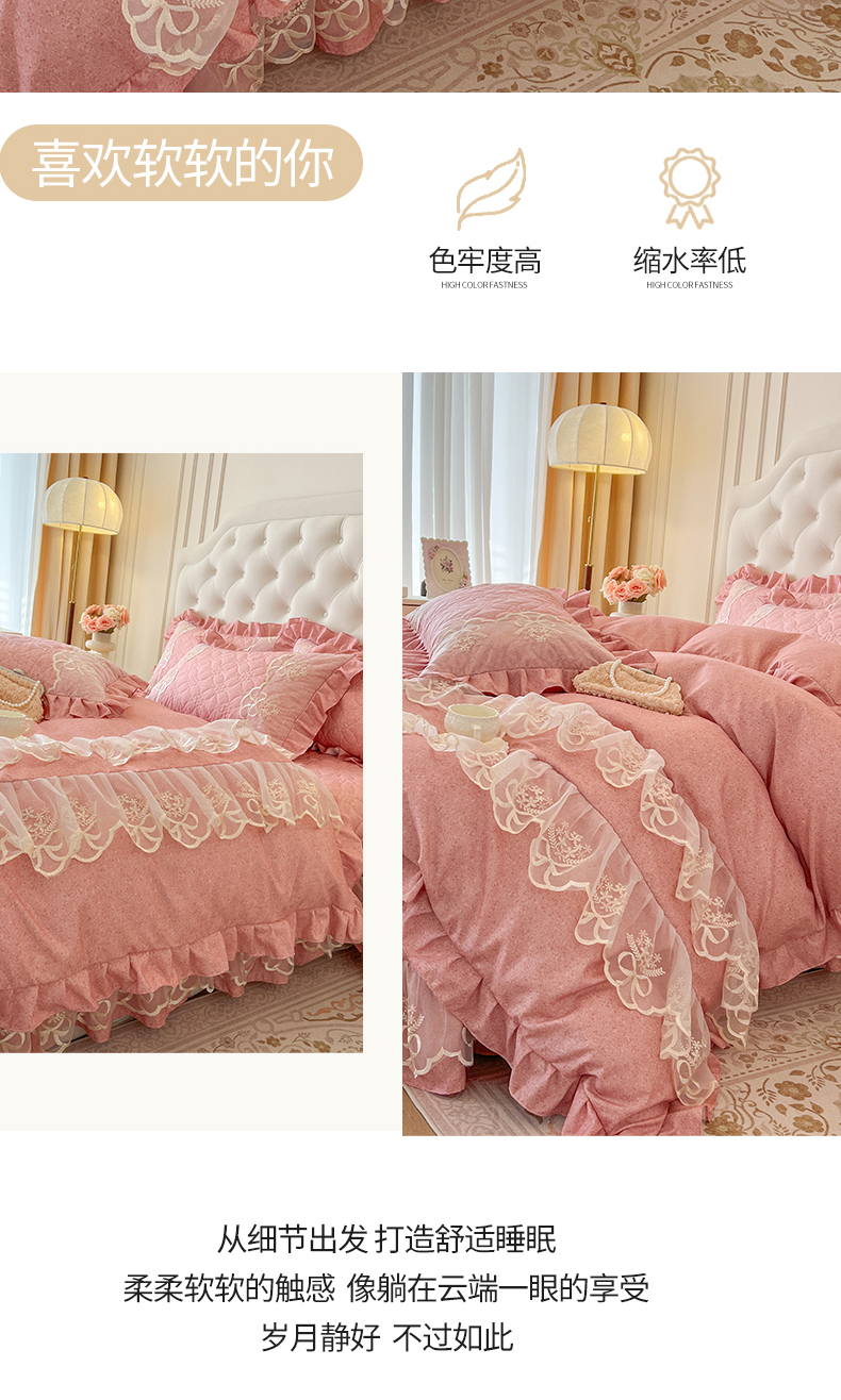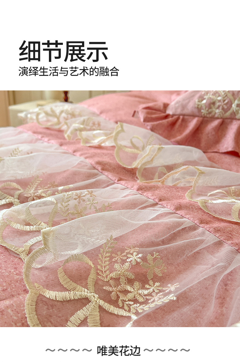 商品名称:(总)网红馆 2025新款亲肤蕾丝花边床盖款四件套-美好生活