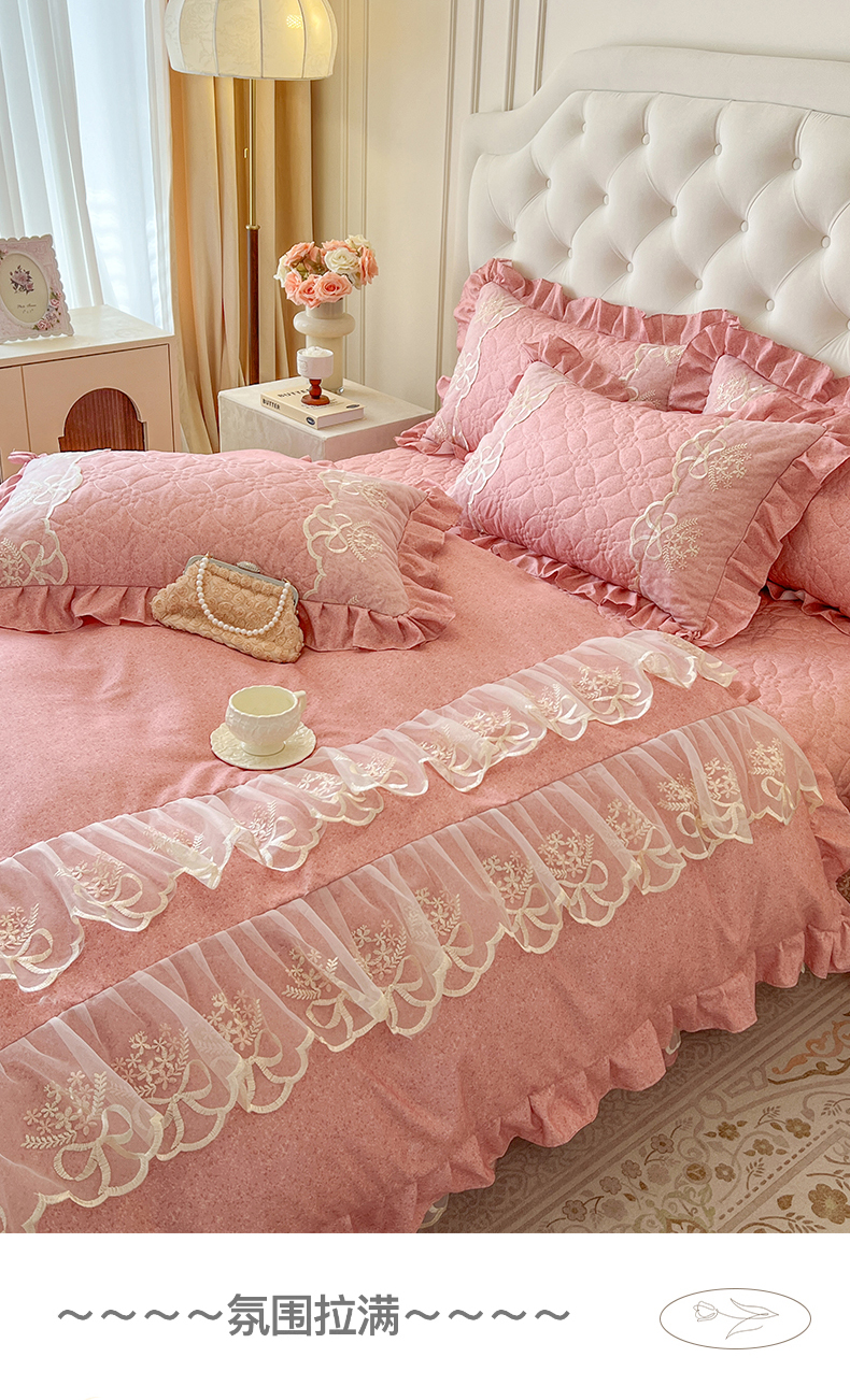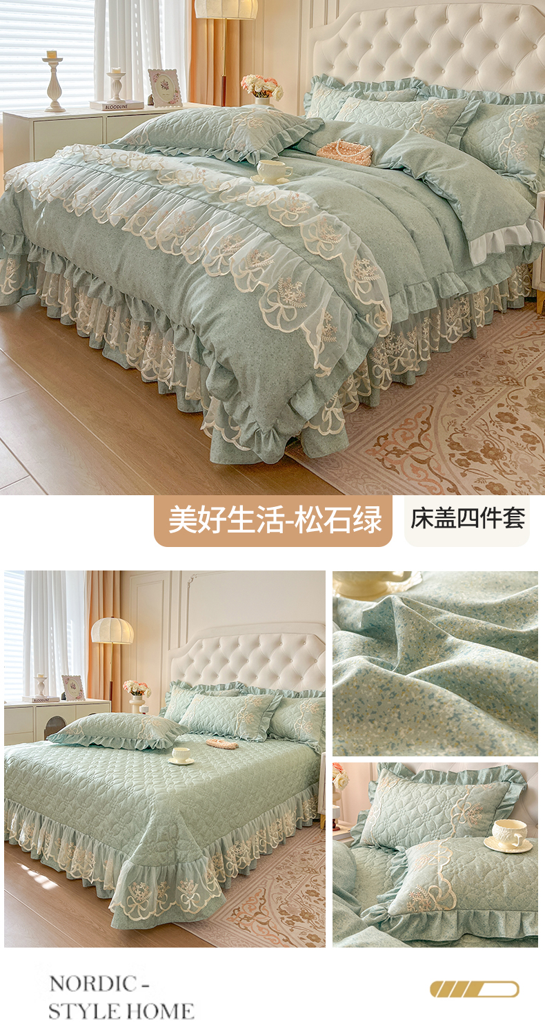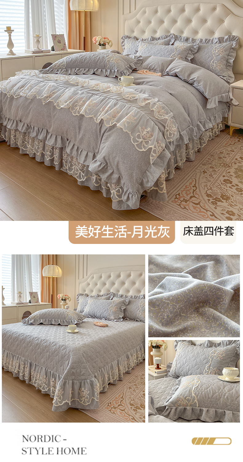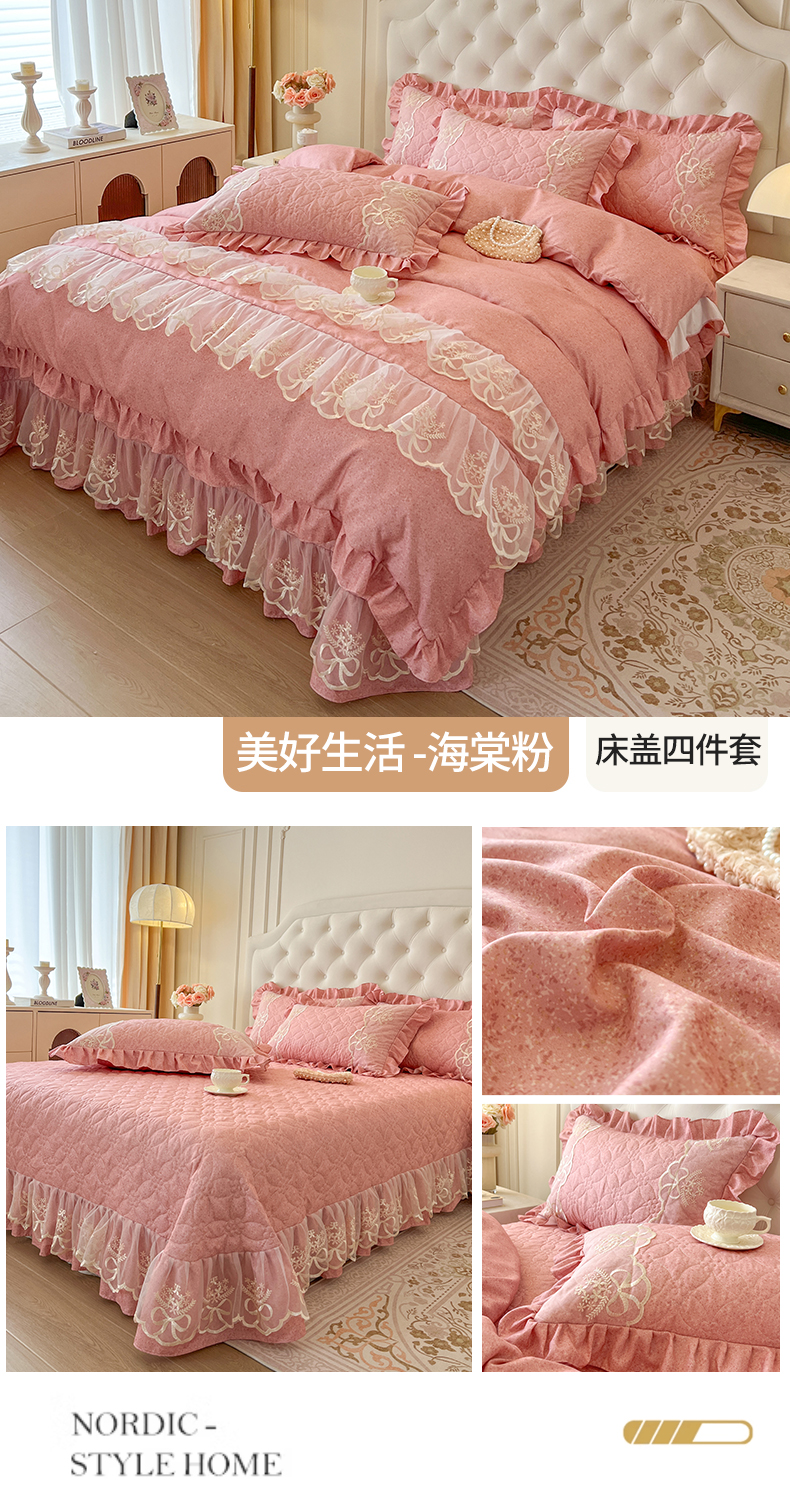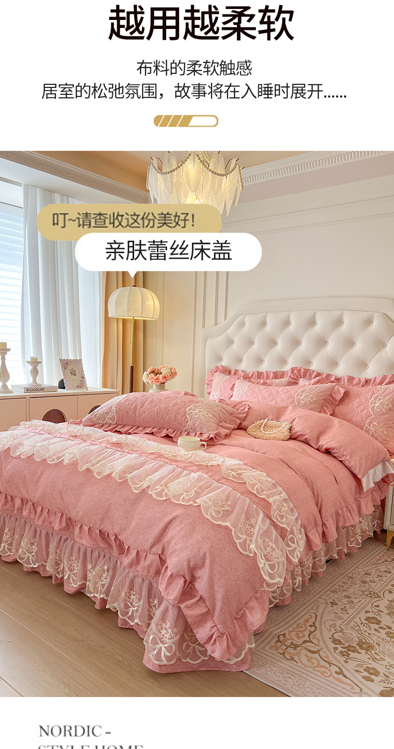 (总)网红馆 2025新款亲肤蕾丝花边床盖款四件套-美好生活