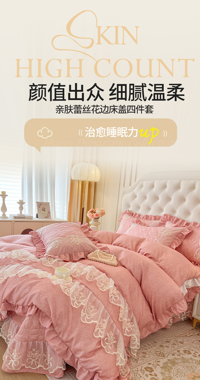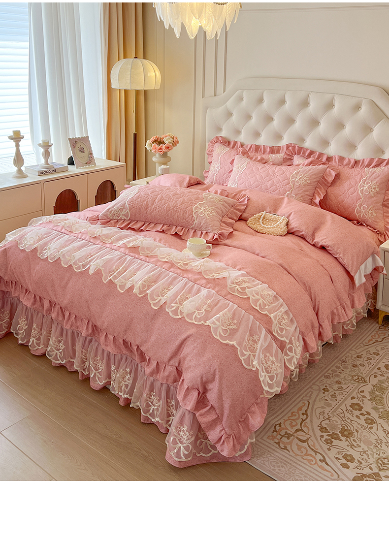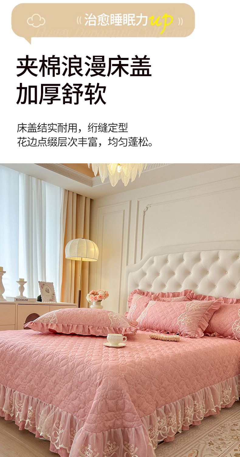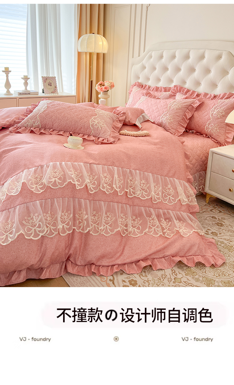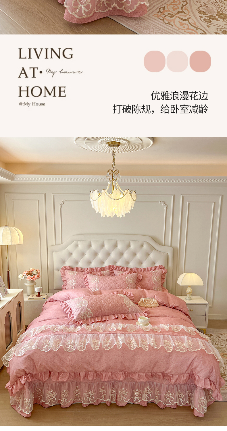 (总)网红馆 2025新款亲肤蕾丝花边床盖款四件套-美好生活