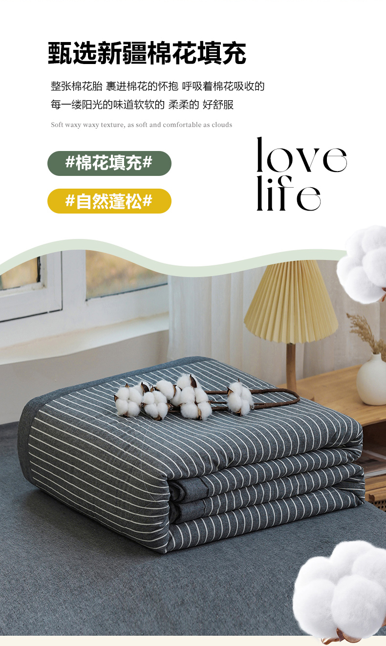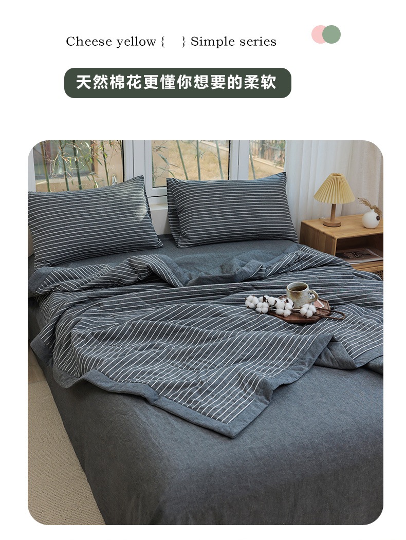 当前位置: 91家纺网 > 商品网购 > 床品套件 > 四件套 > 夏被四件套 > 柠萌家居 2025新款全棉色织水洗棉棉花夏被四件套里外全棉 夏凉被被子被芯 中条纹深灰