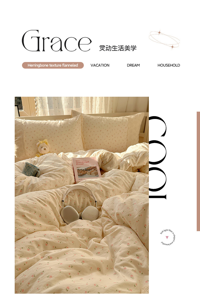 当前位置: 91家纺网 > 商品网购 > 床品套件 > 四件套 > 水洗棉四件套 > 盼季家纺 2025新款A类法式小清新皱皱纱花边蕾丝水洗棉床上四件套宿舍床笠三件套 蕾丝花边-粉小格