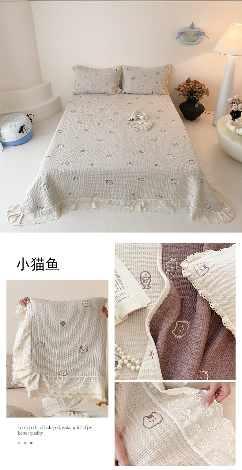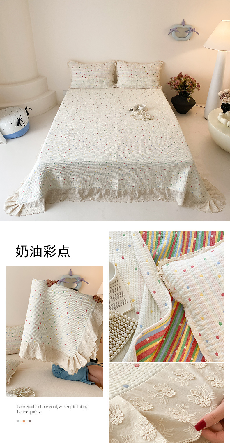 (总)麻依 2025新款韩国清新全棉纱布床盖三件套,憨憨熊,彩色南瓜,车厘子,两颗草莓,奶盖KT,奶油波点-灰,奶油彩点,水蓝KT,水墨花,丝带,桃心-米白,小猫鱼