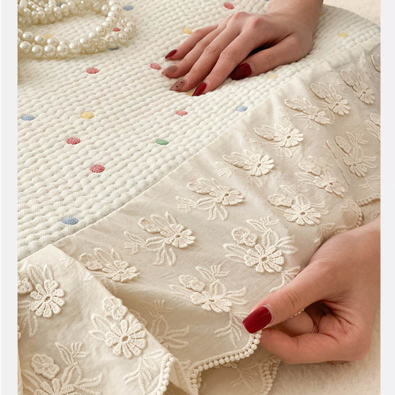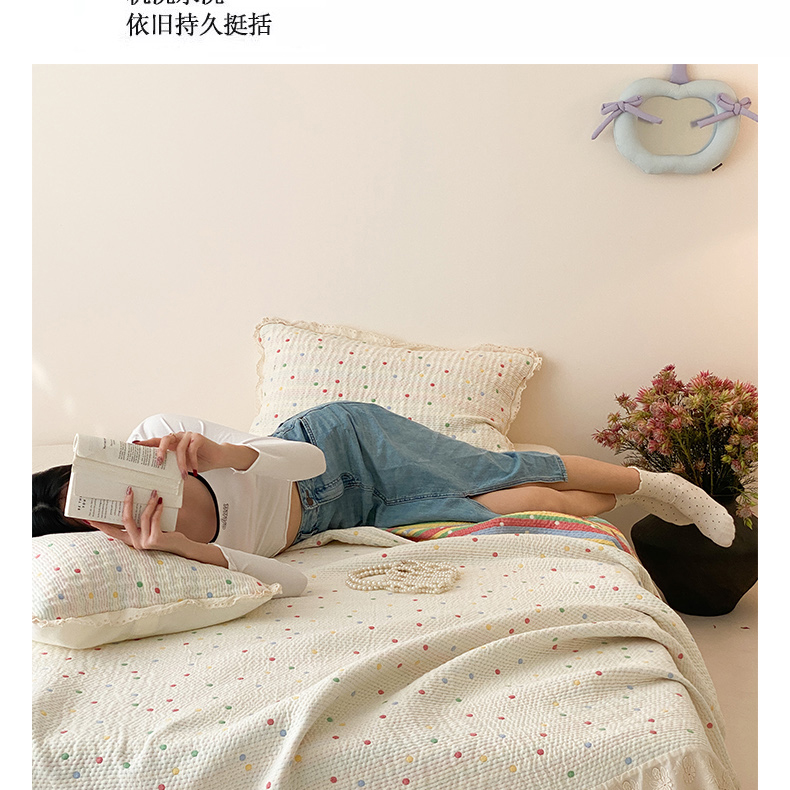 商品名称:麻依 2025新款韩国清新全棉纱布床盖三件套 桃心-米白